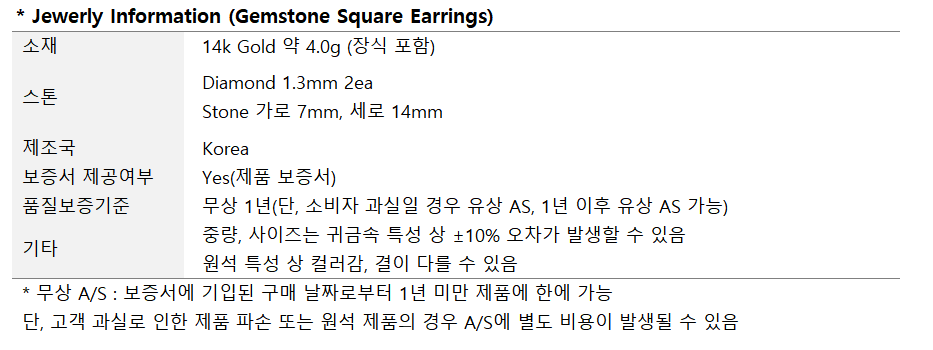 하이퀄리티의 젬스톤 귀걸이입니다.