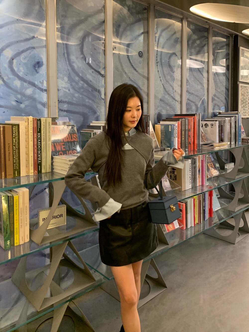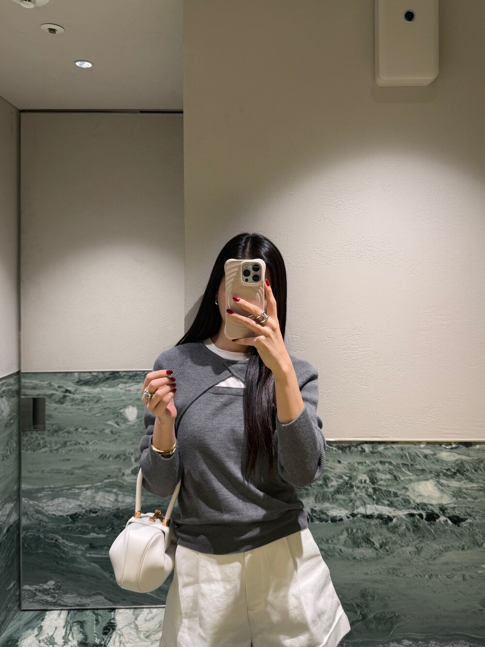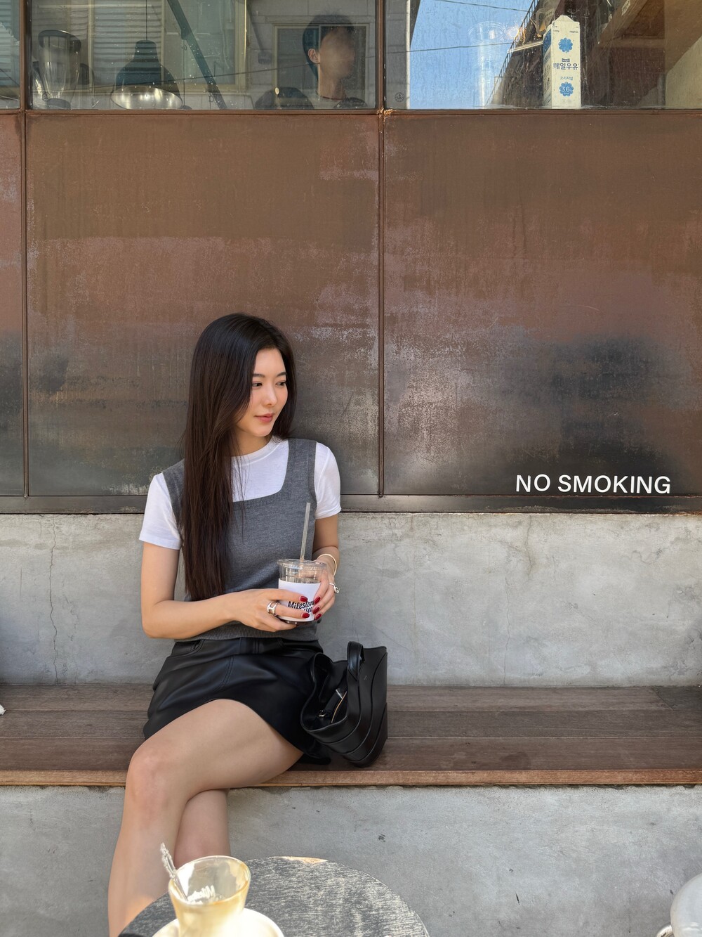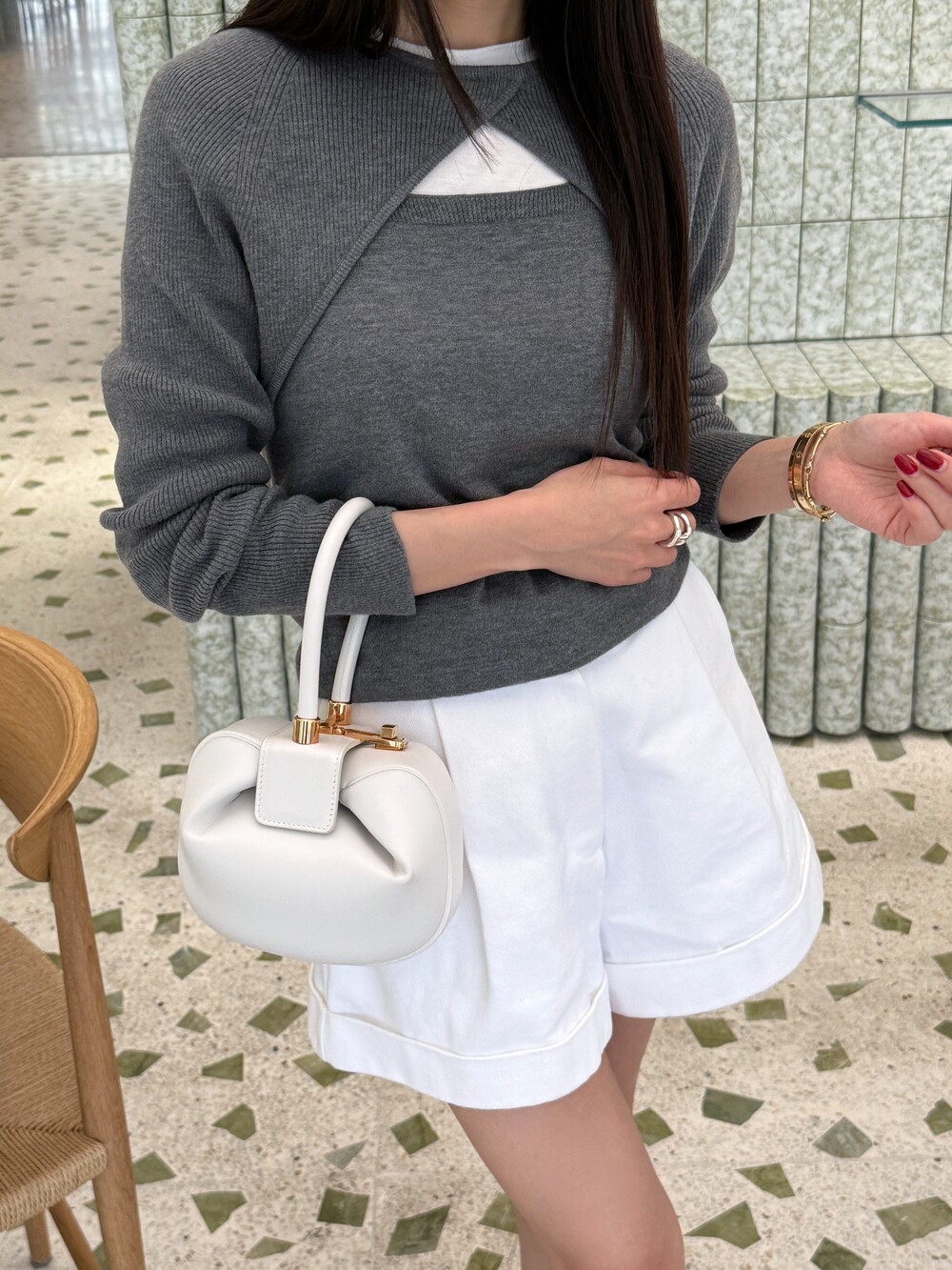 민소매 니트 위에 자연스럽게 겹쳐지는