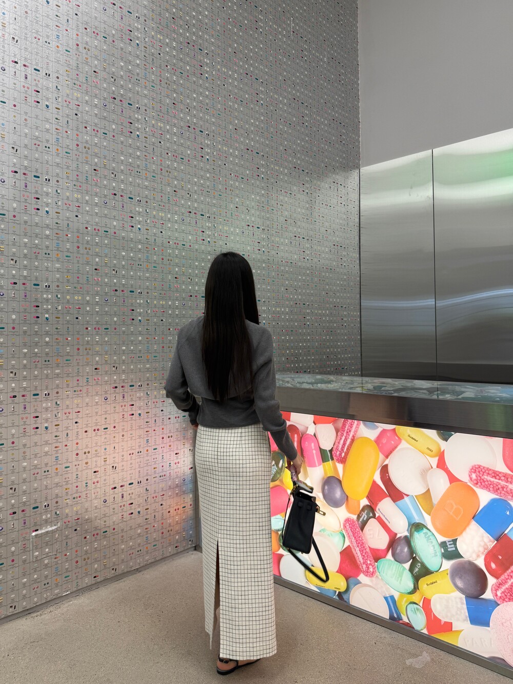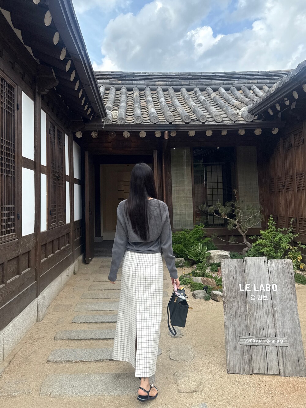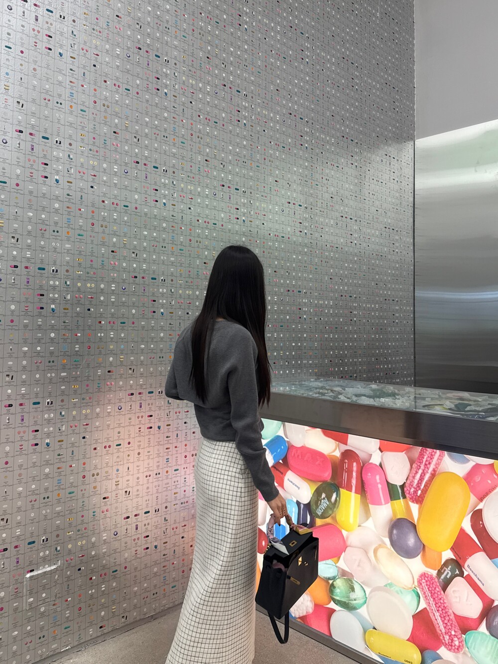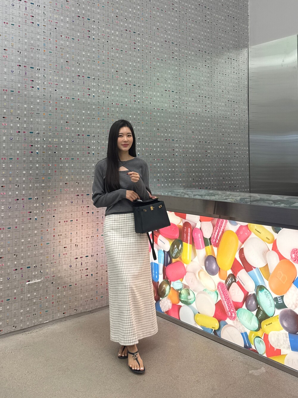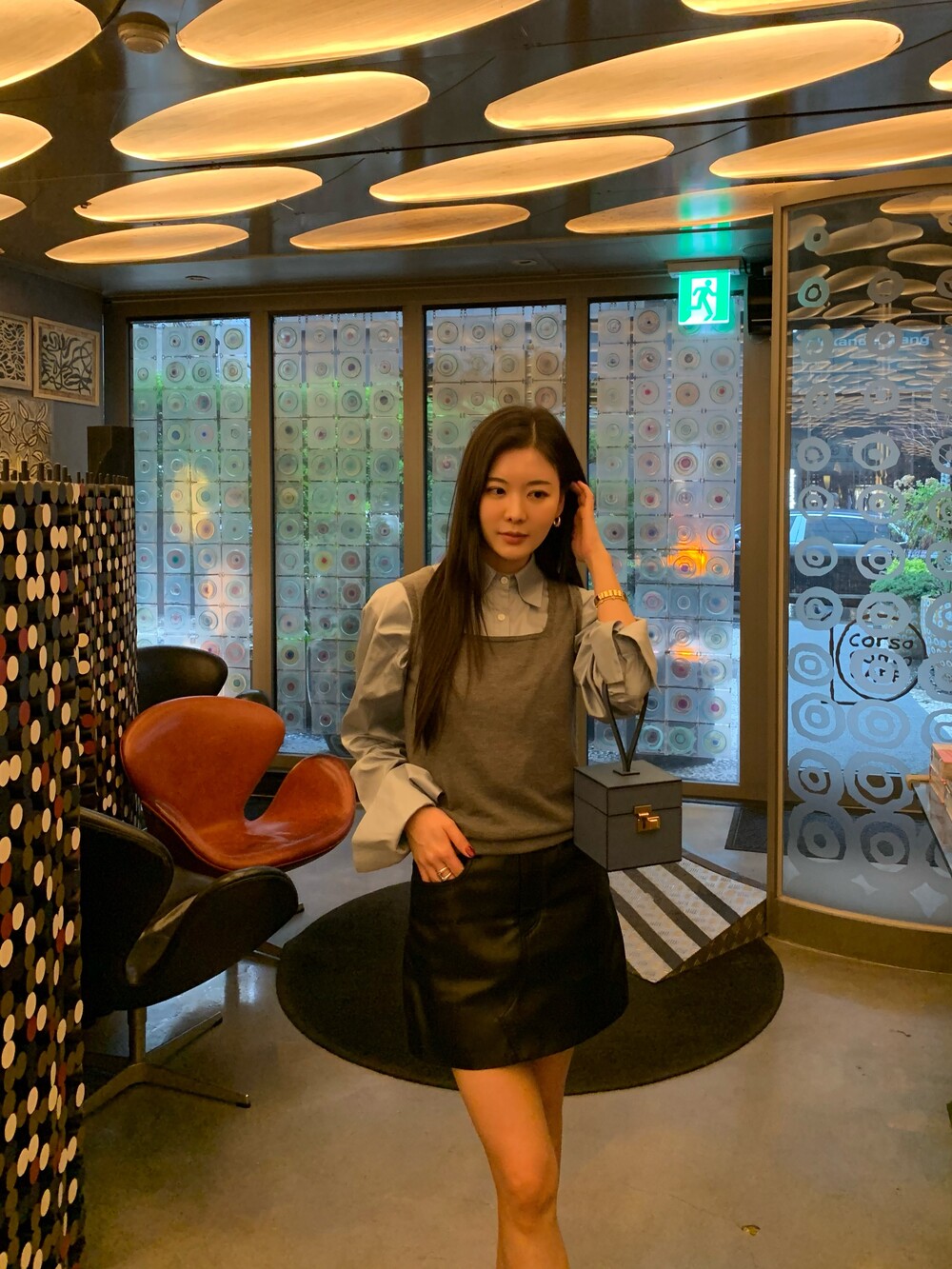 민소매 니트 위에 자연스럽게 겹쳐지는