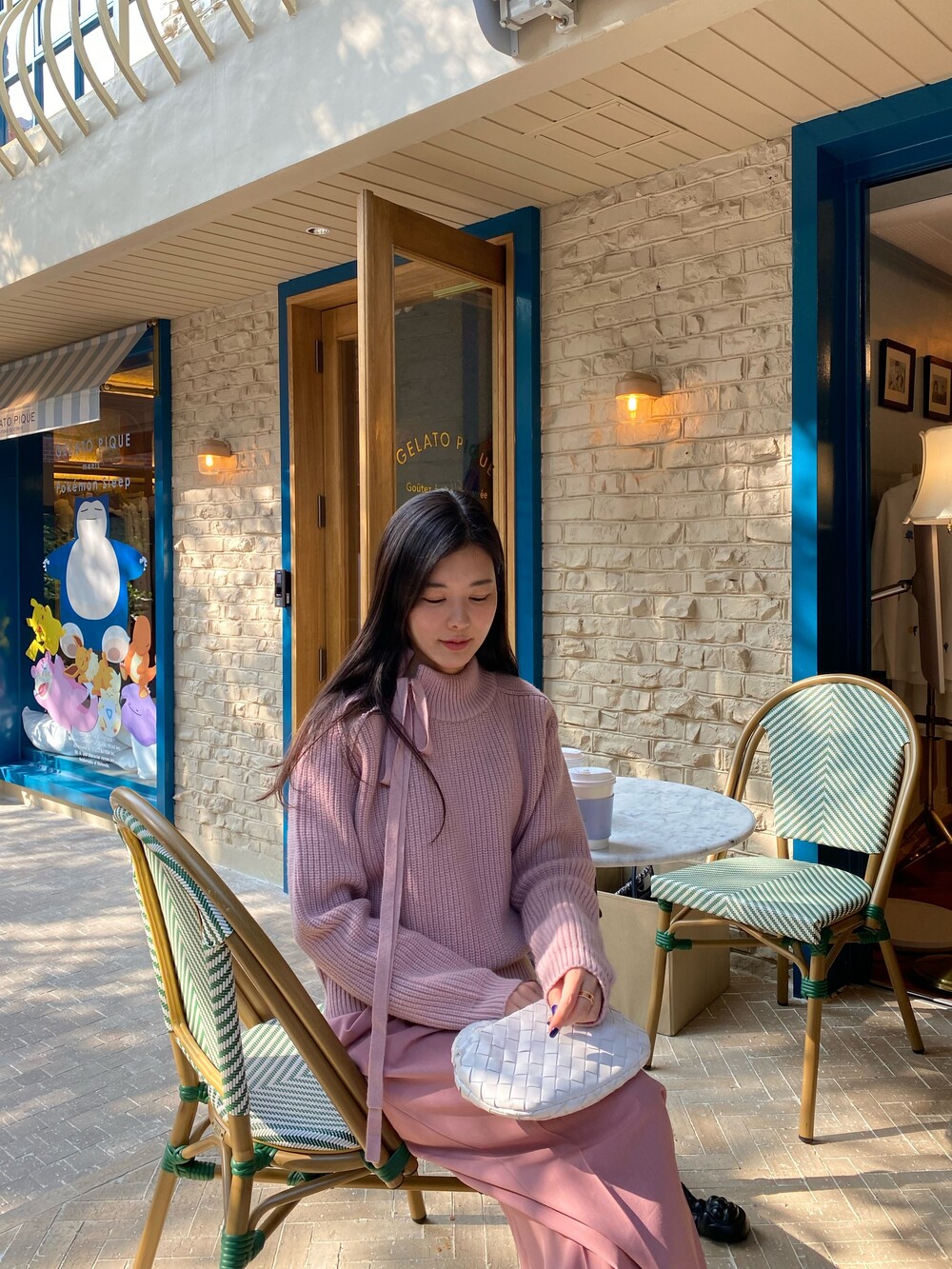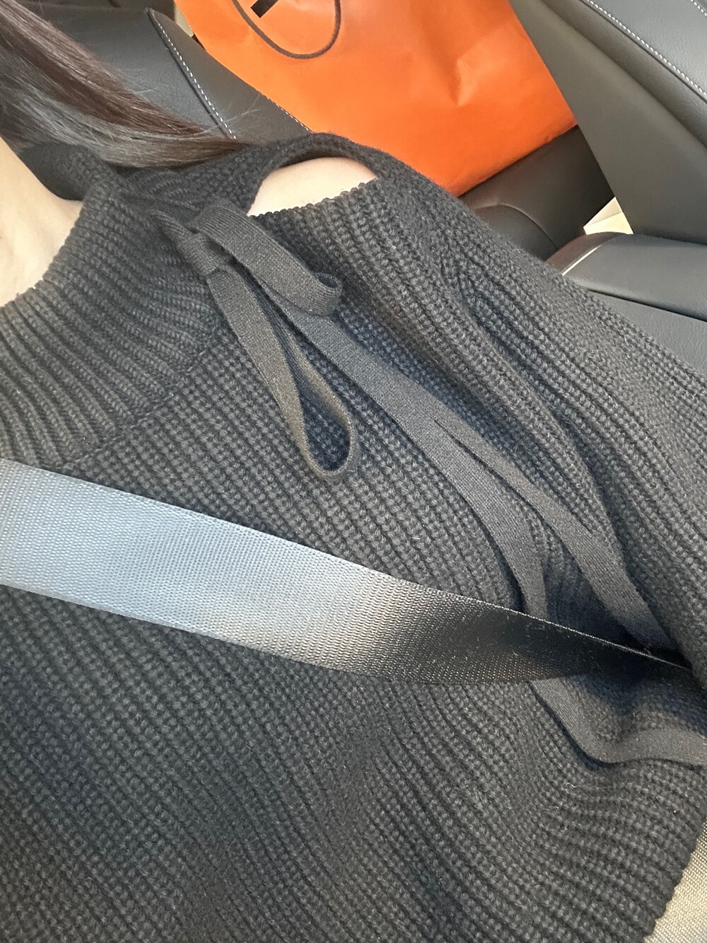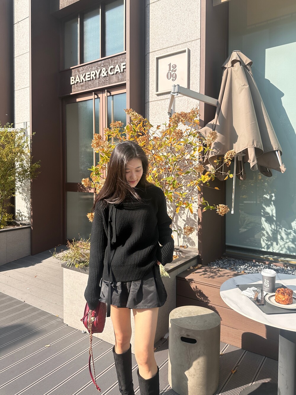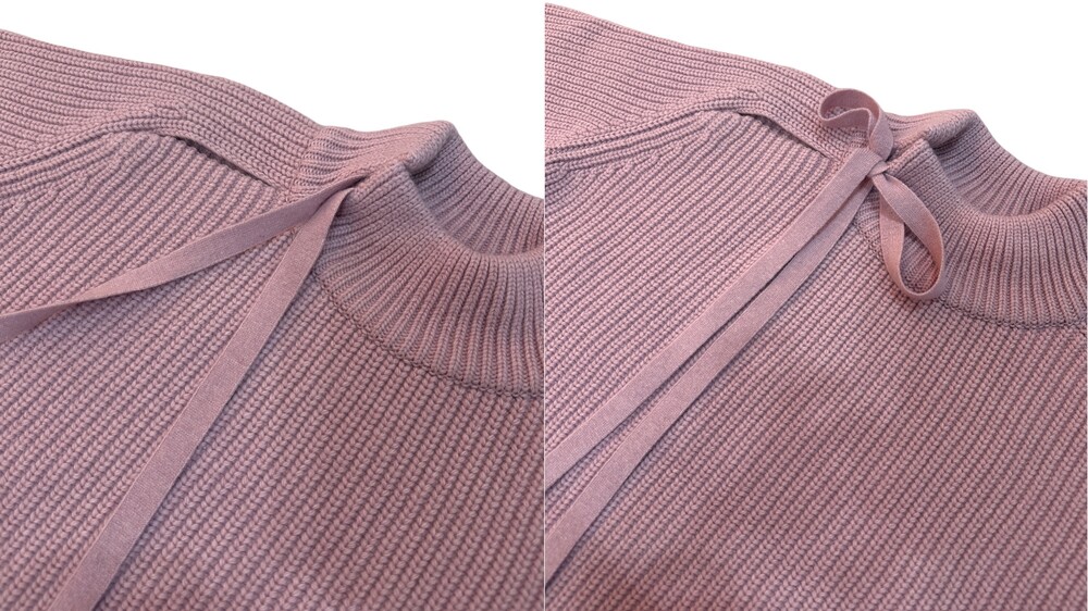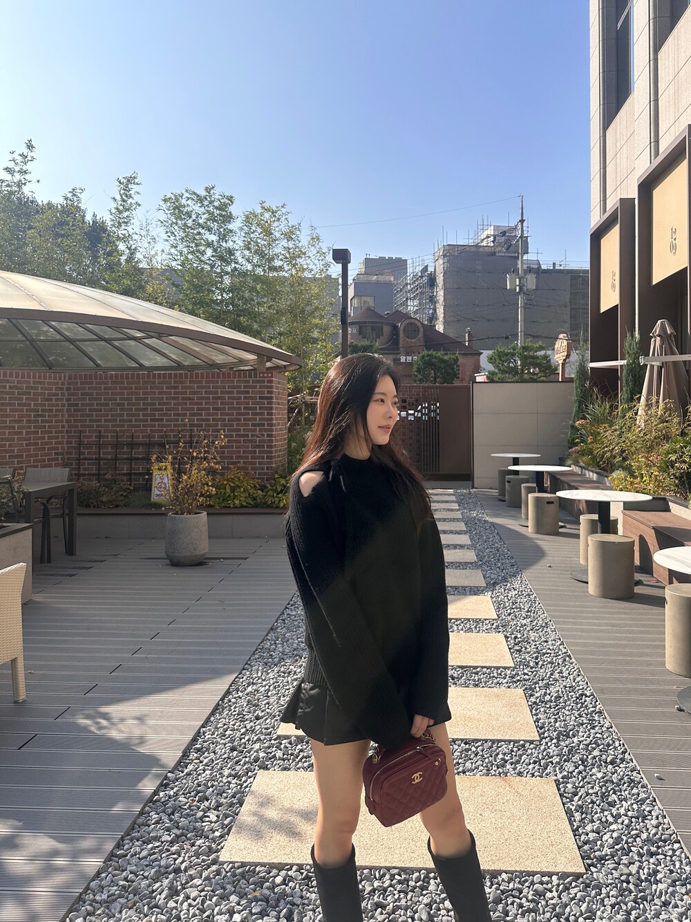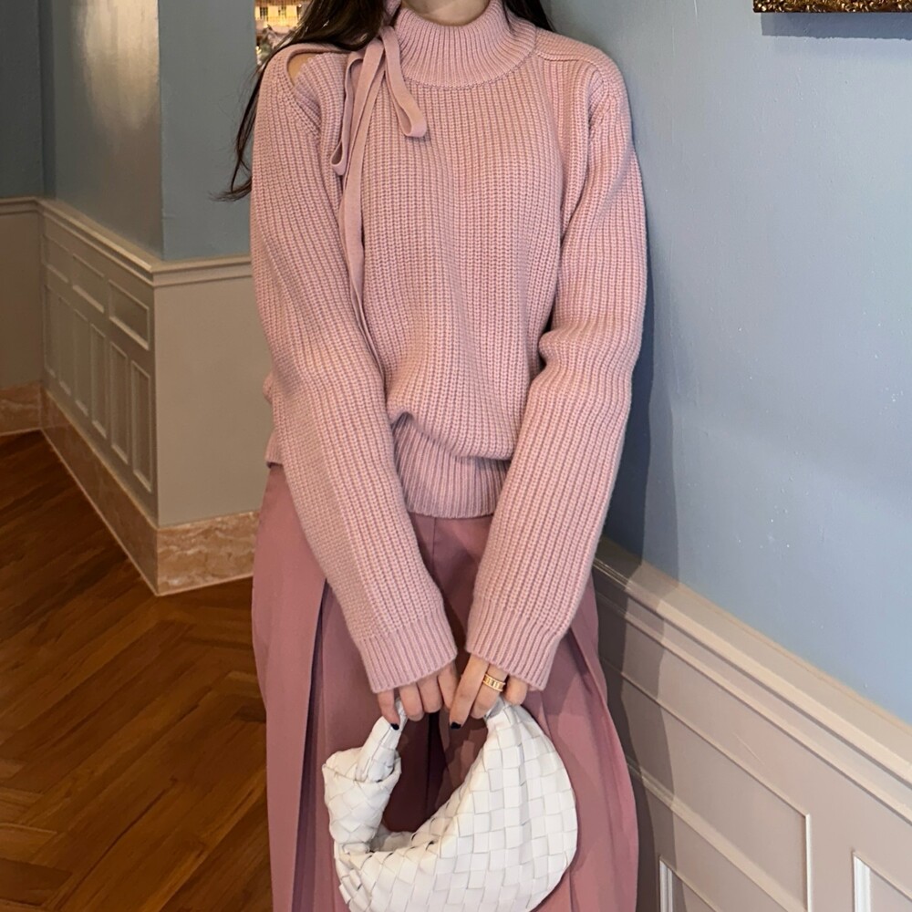 어깨부분에 트임 장식 포인트와 니트 끈으로