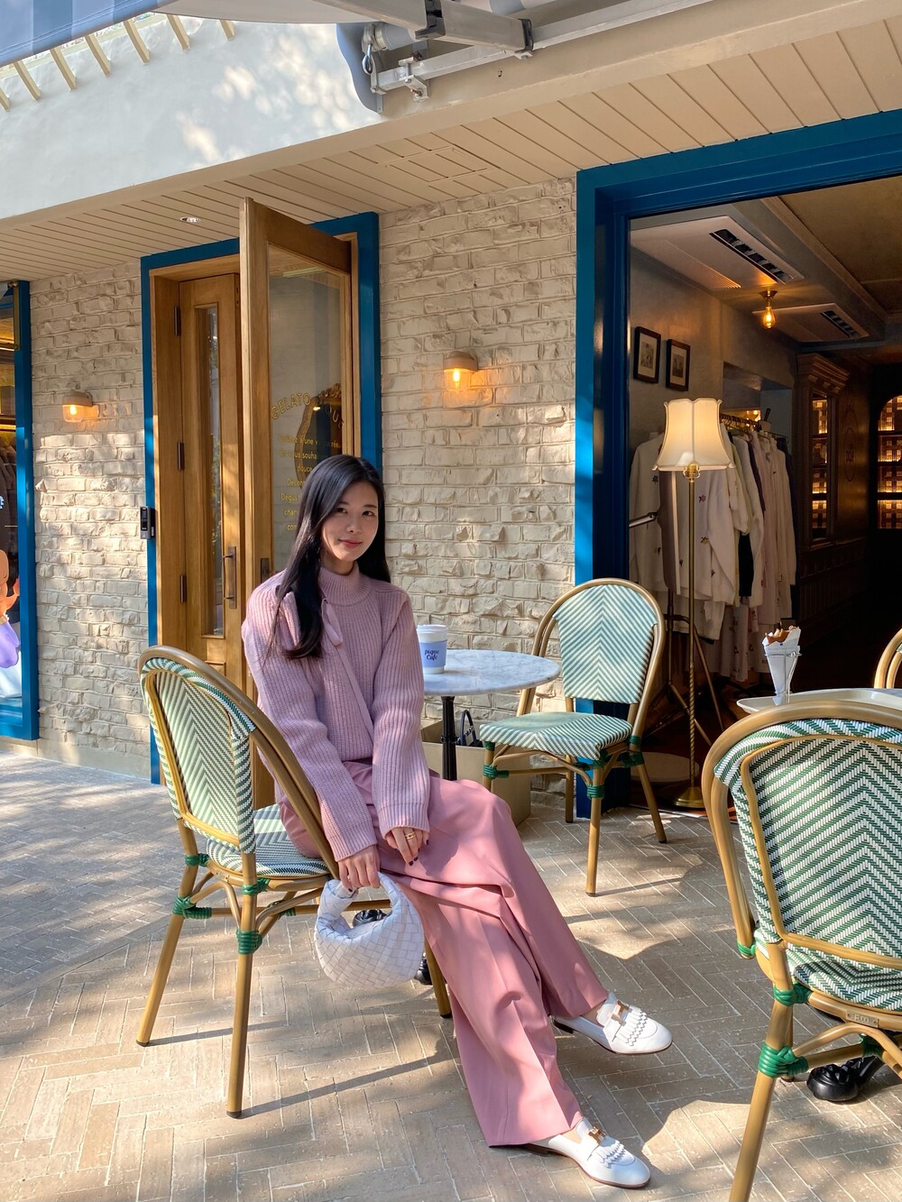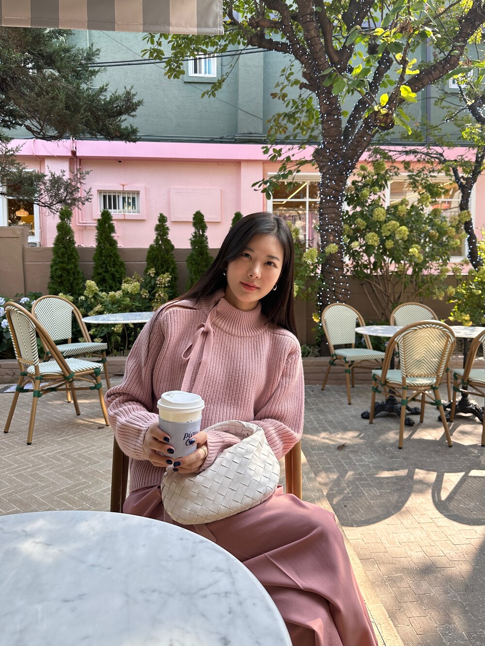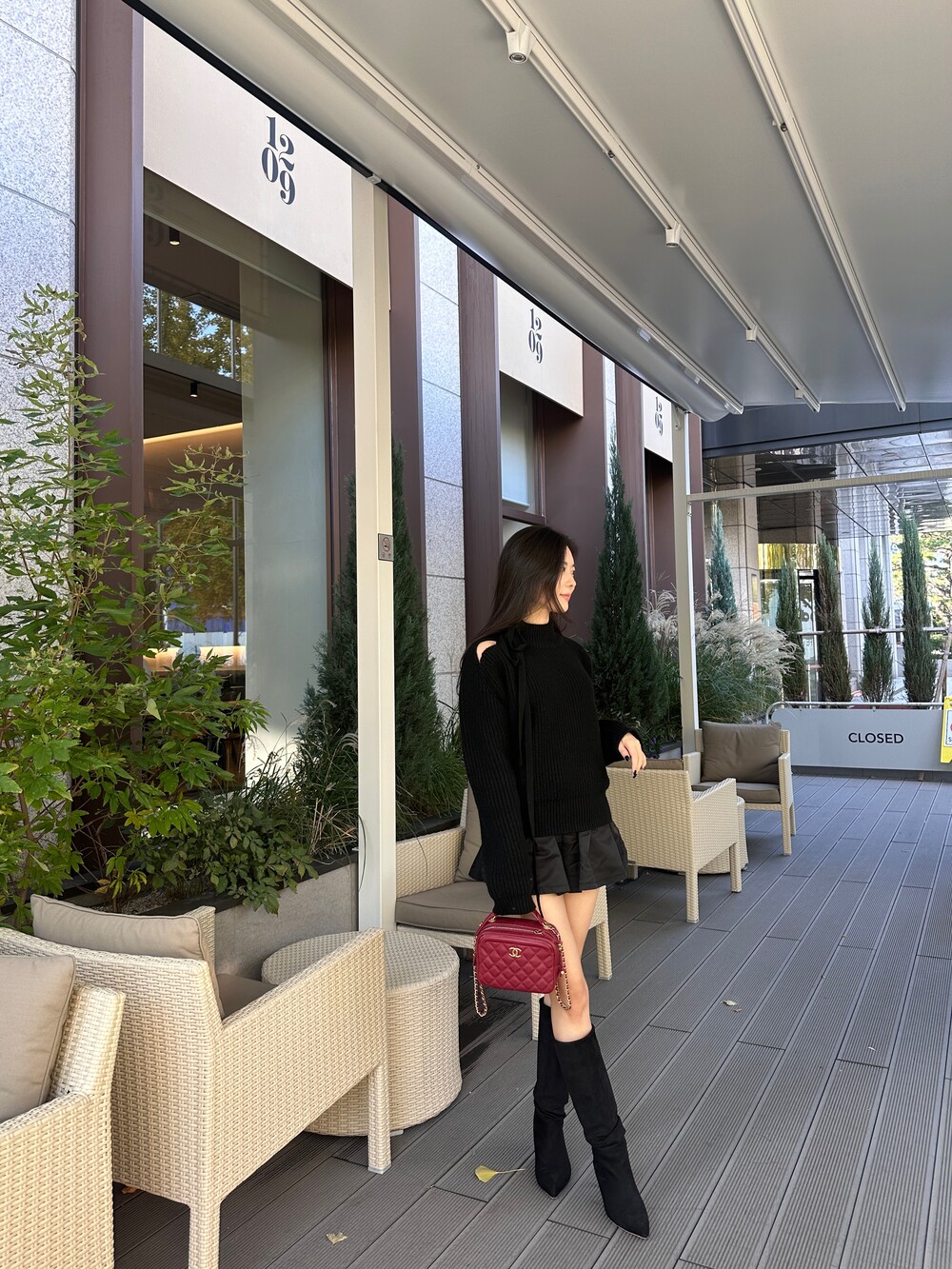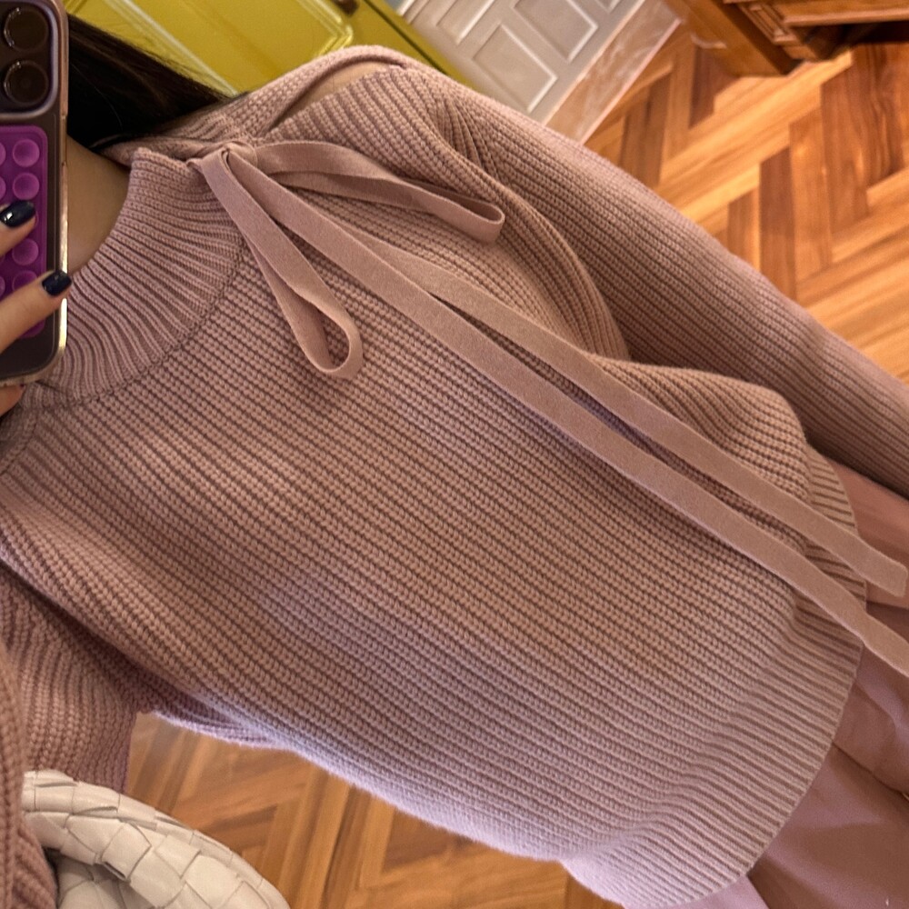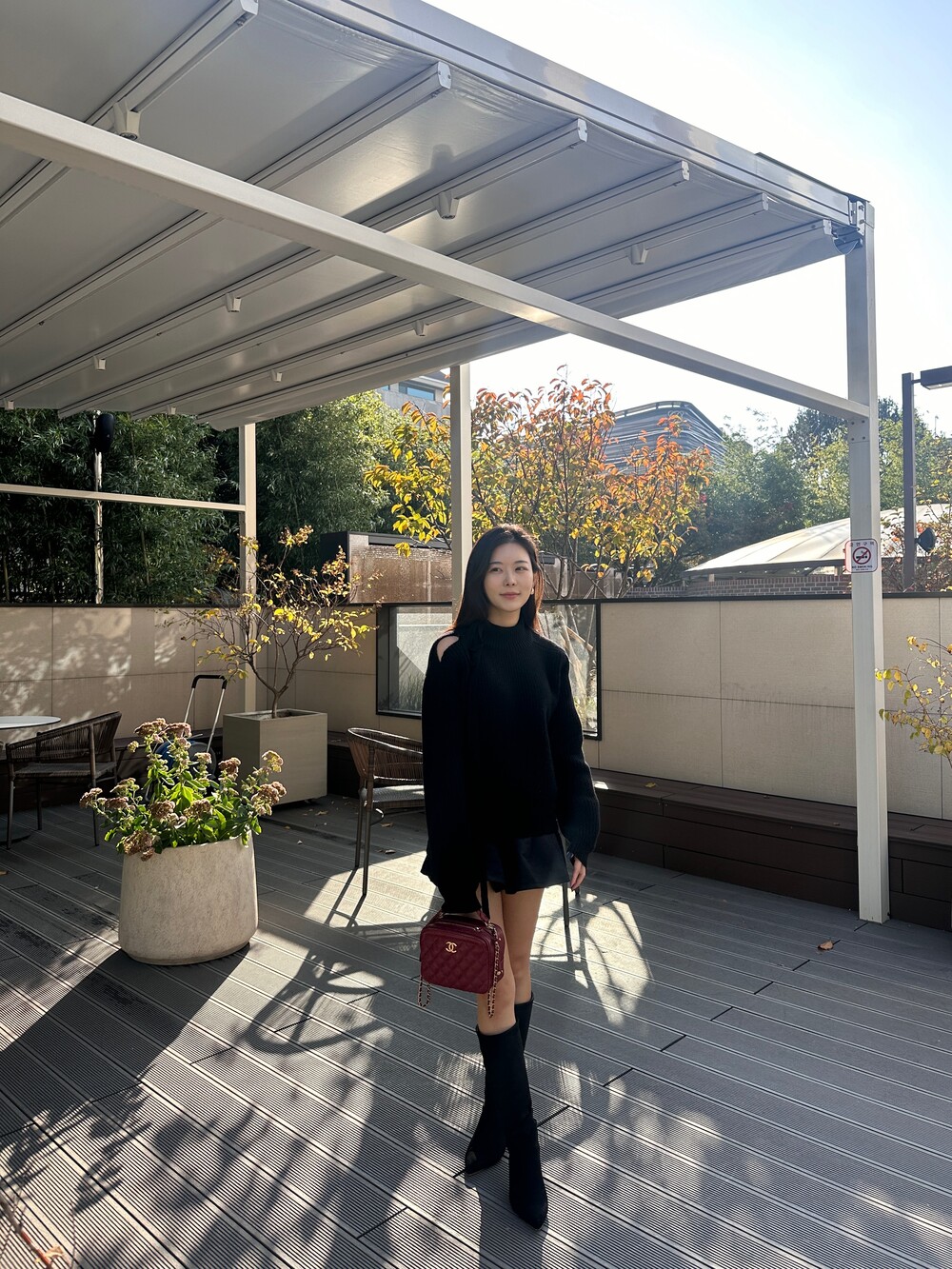 어깨부분에 트임 장식 포인트와 니트 끈으로