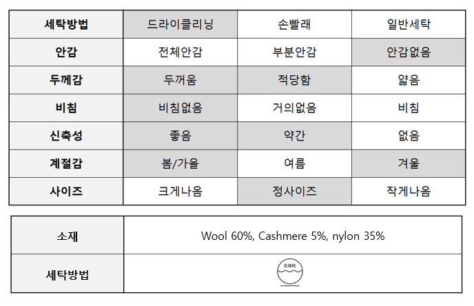 밑단과 소맷단 1대1 리브 짜임과 끝에 스판사를 넣어