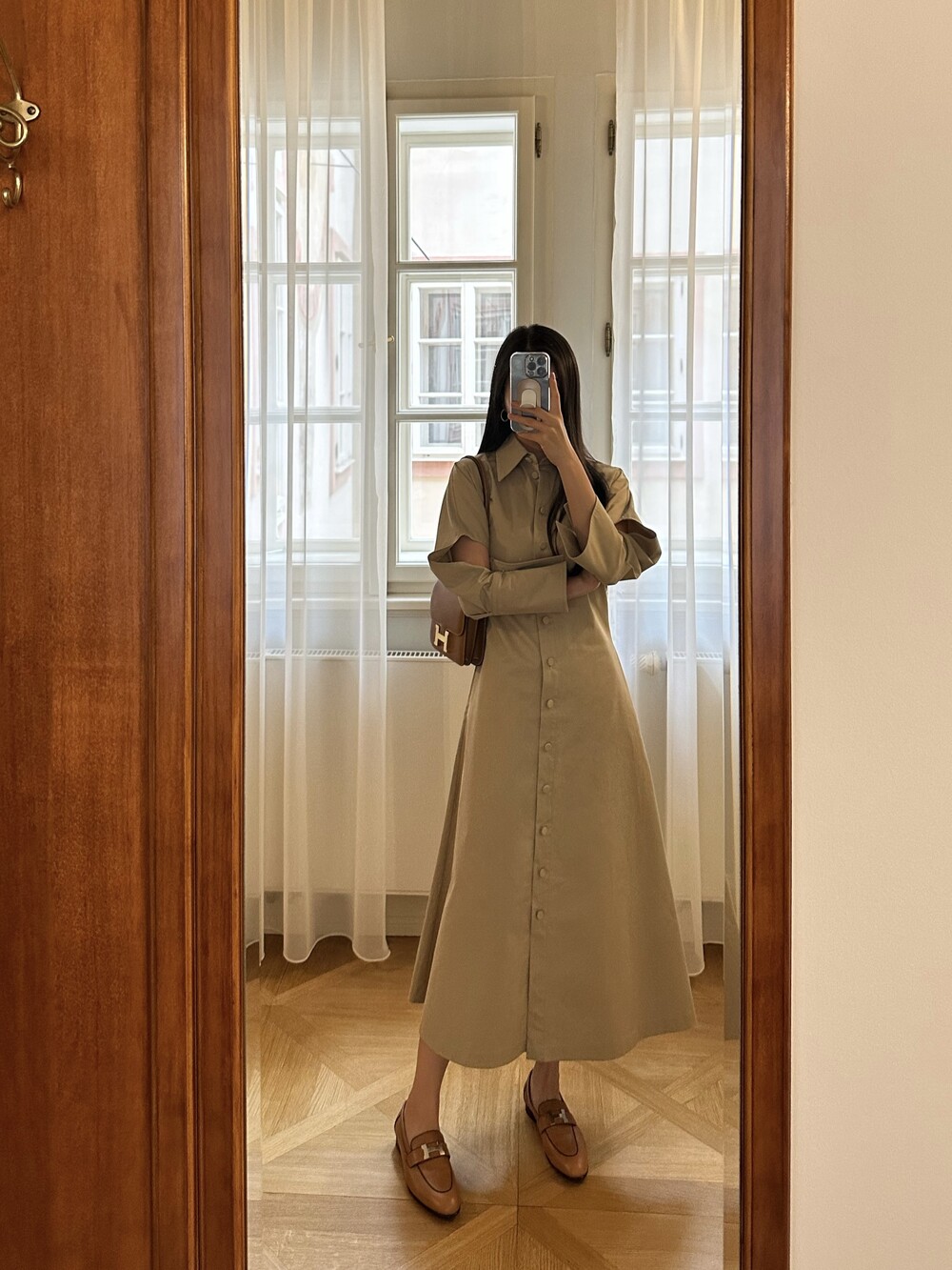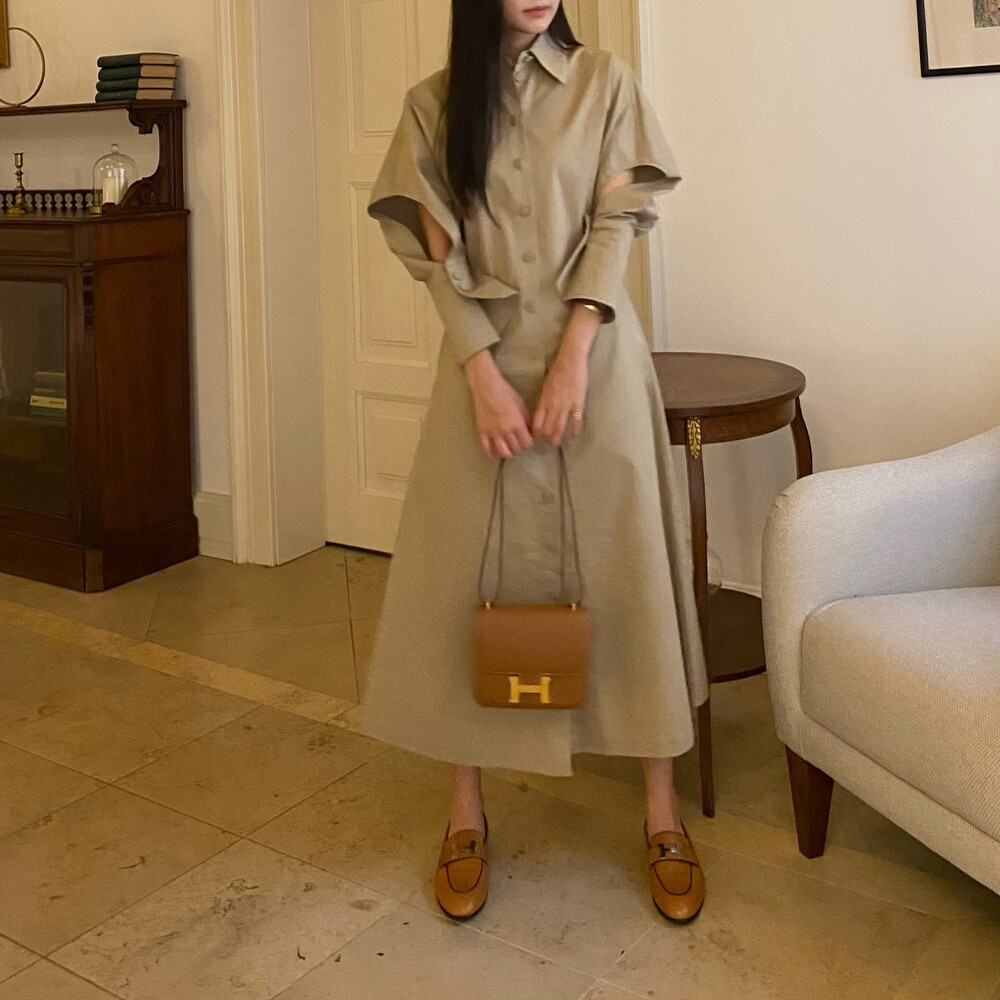 트렌치 느낌의 셔츠 원피스입니다.