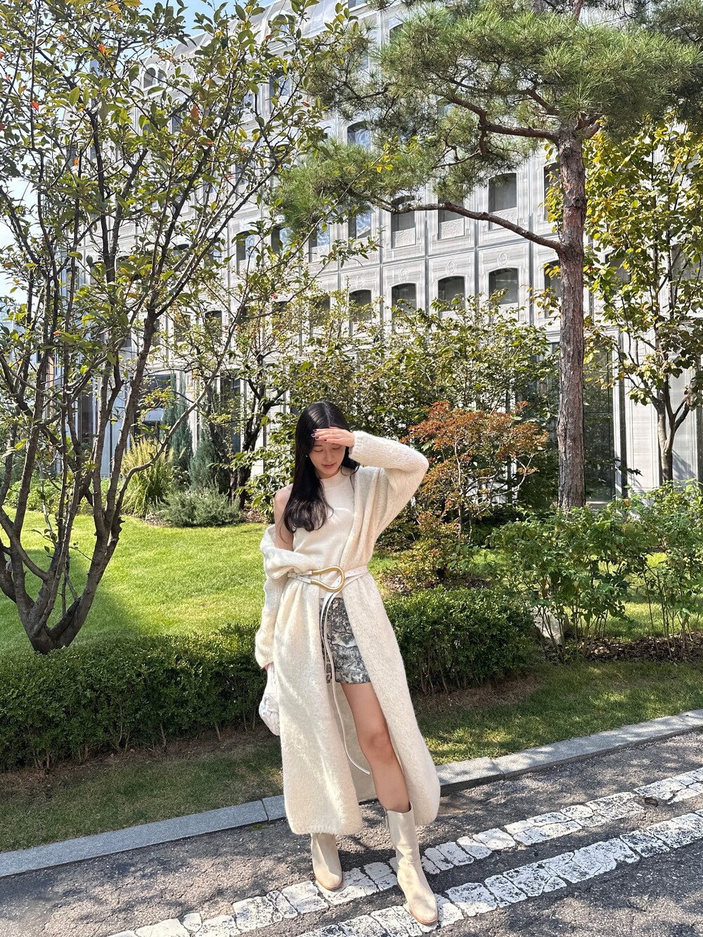 * Baby Alpaca Maxi Coat Cardigan (Ivory)