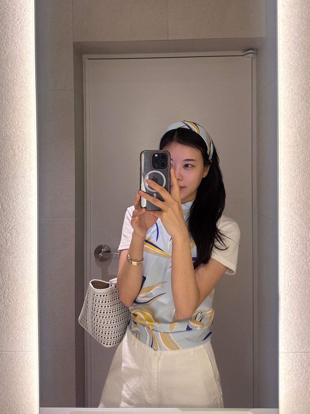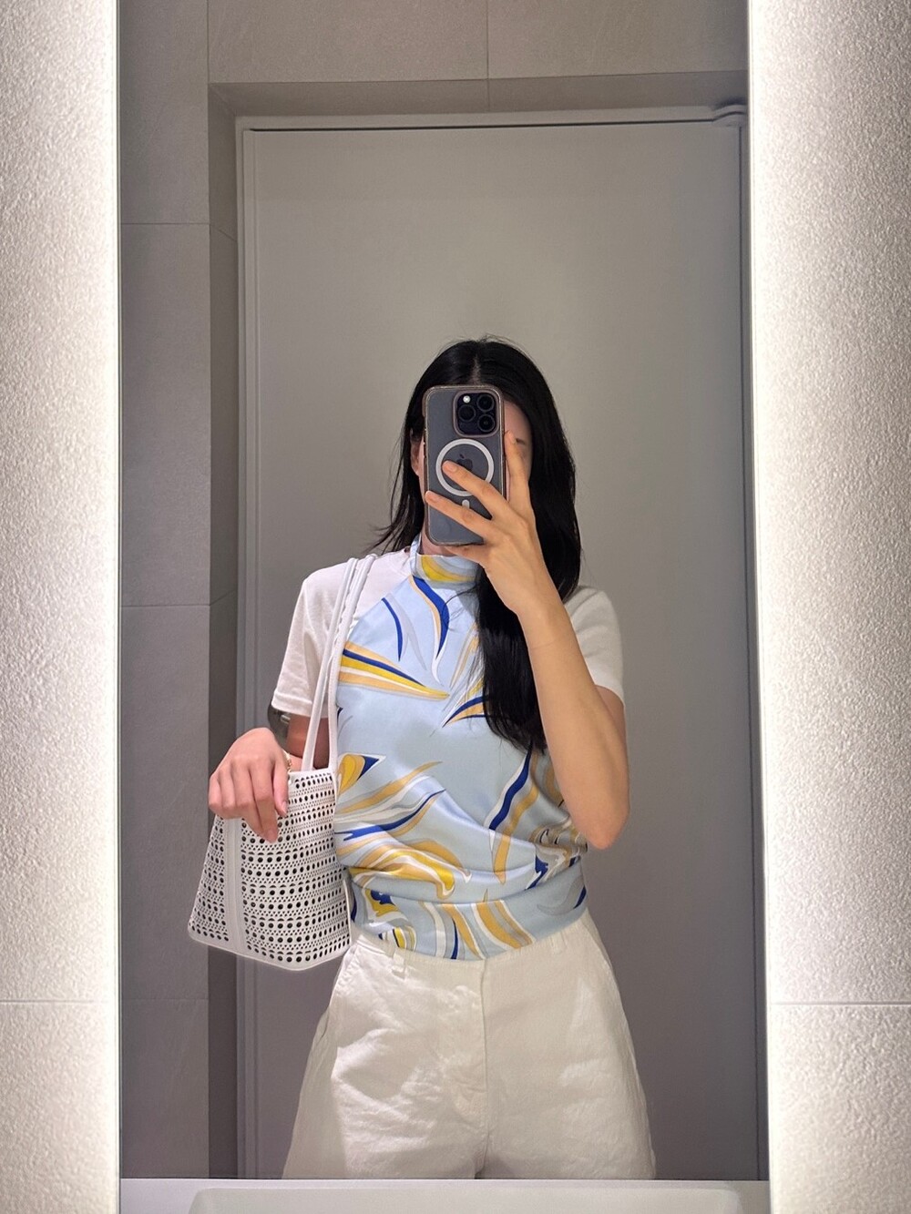 * 스카프탑 원단 프린팅의 모양 및 위치는