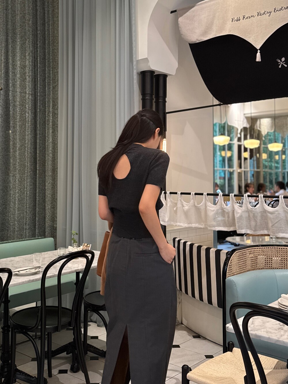 뒷면 물방울 모양의 트임 디테일이