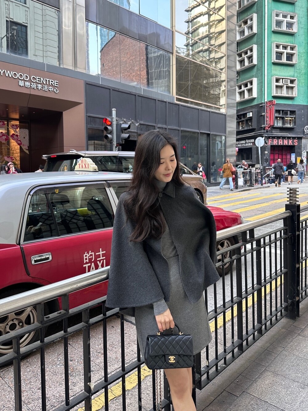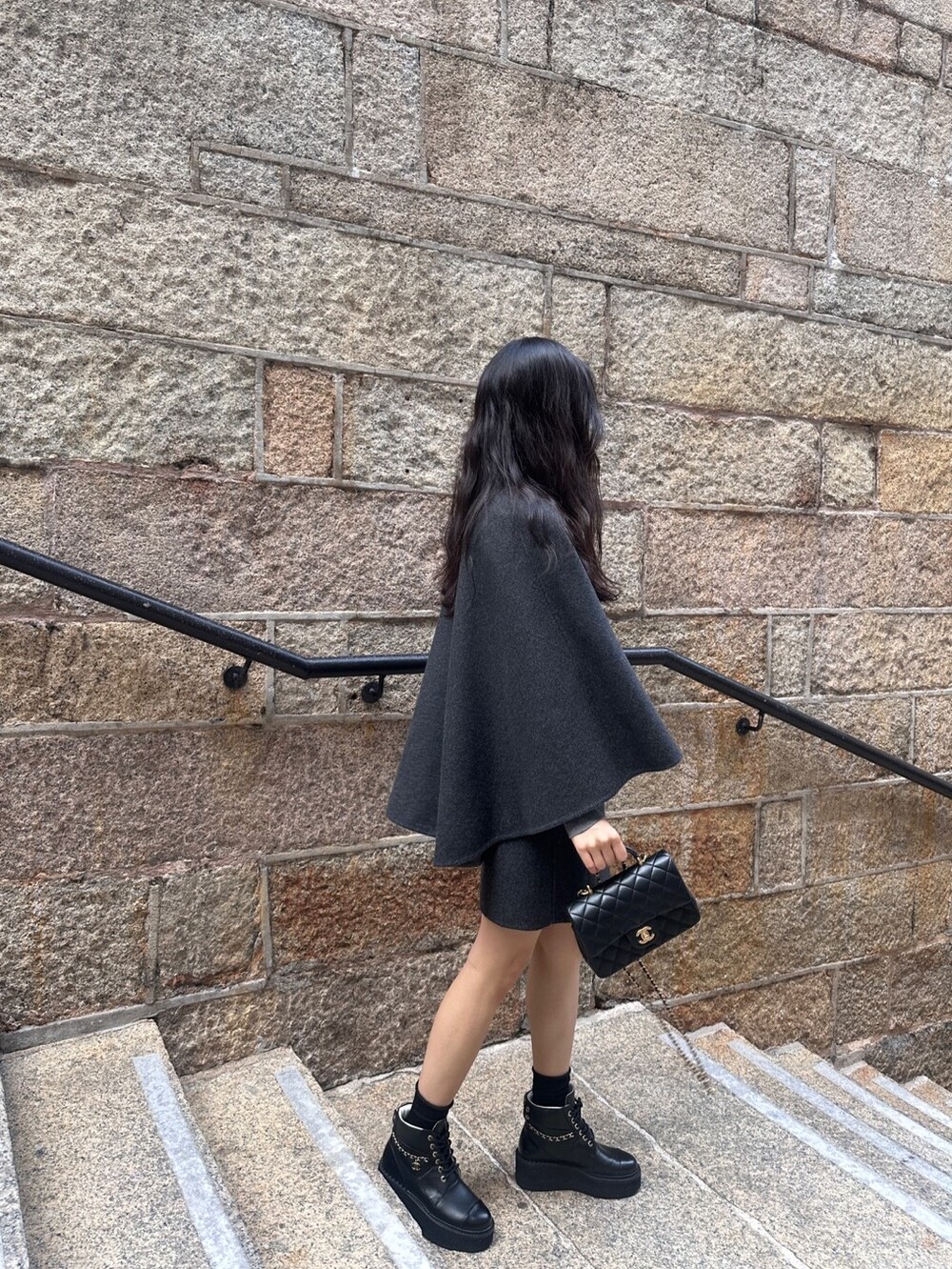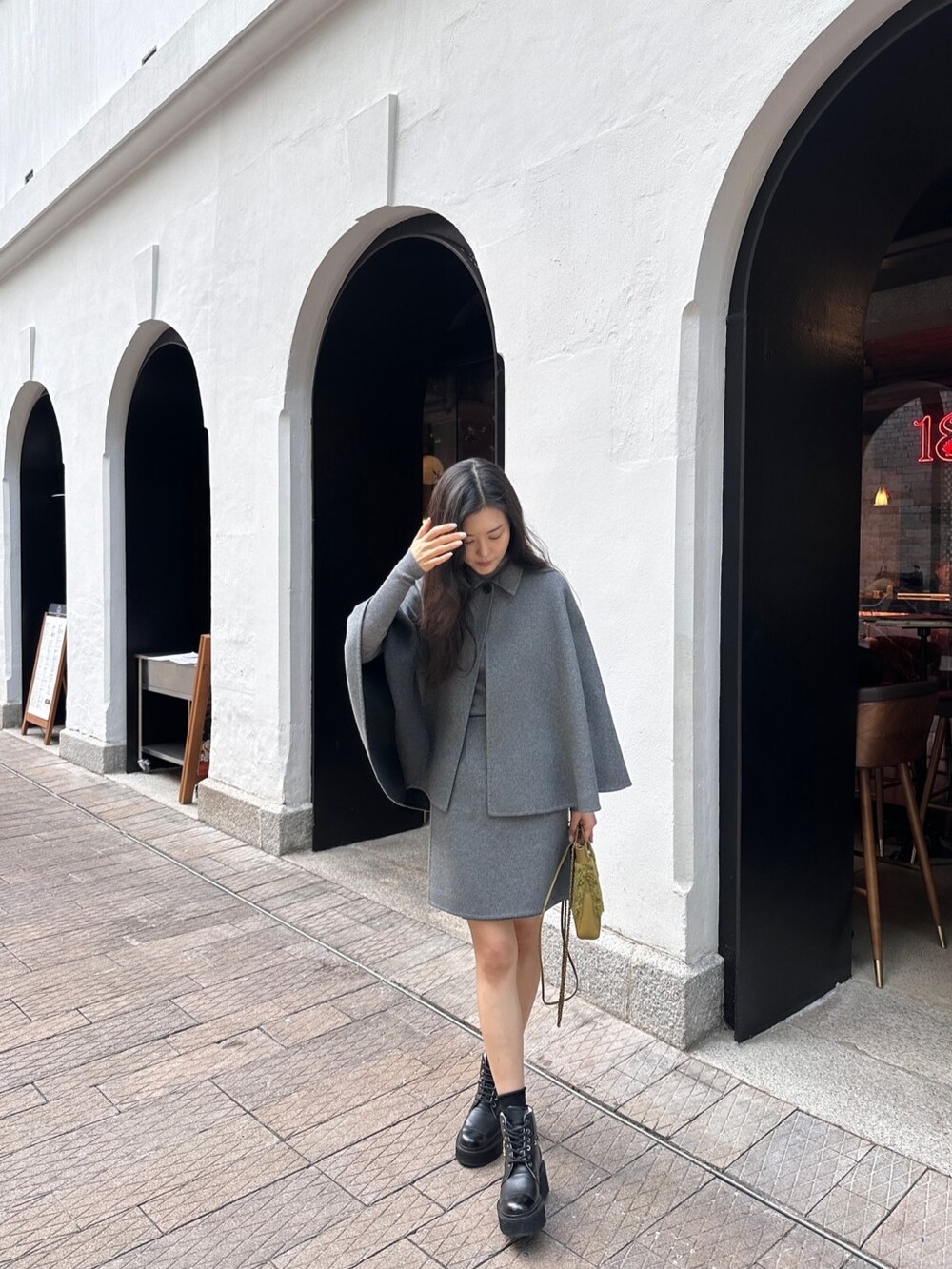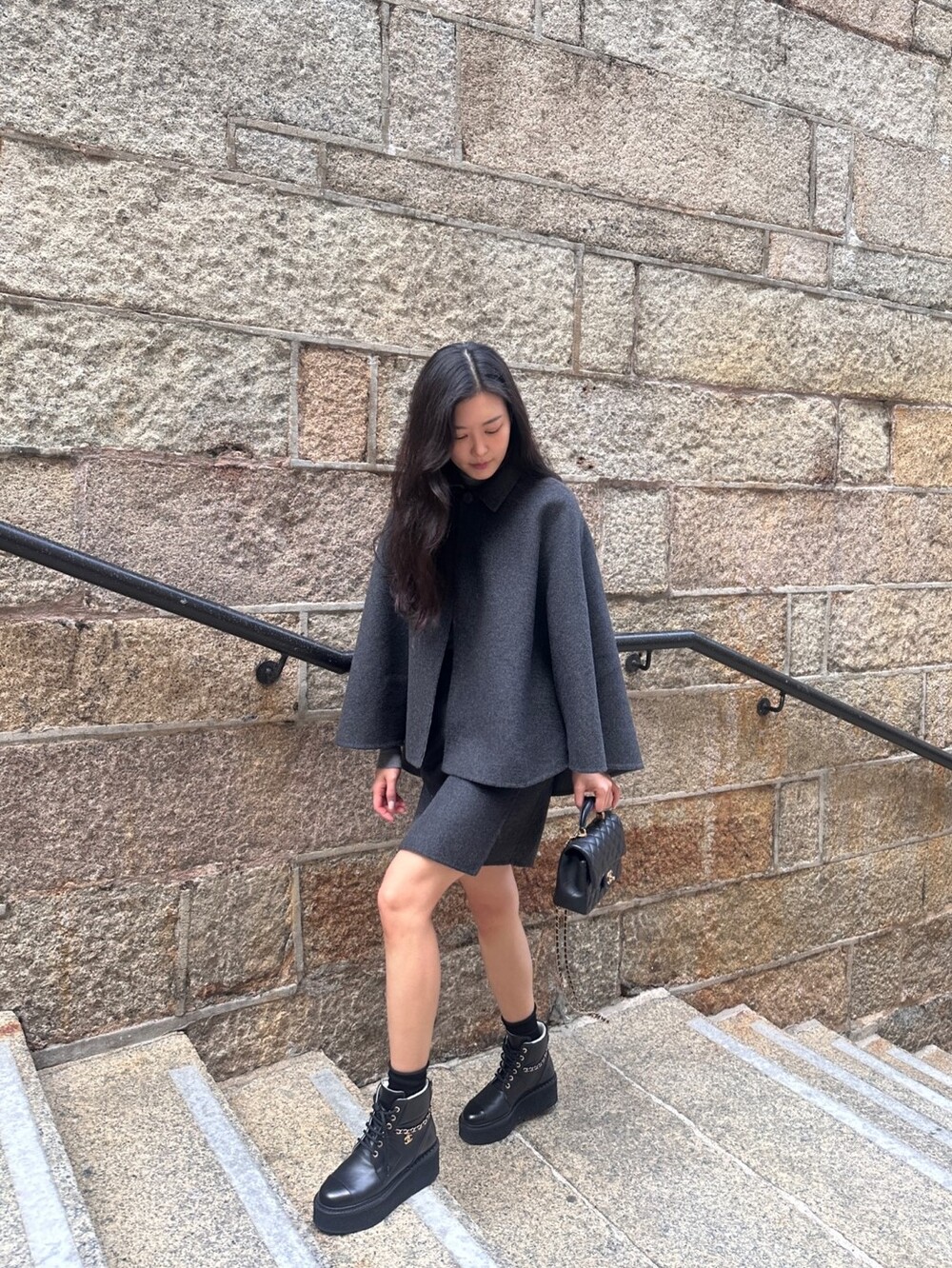 케이프 딥차콜 /스커트 연그레이 방향 착용