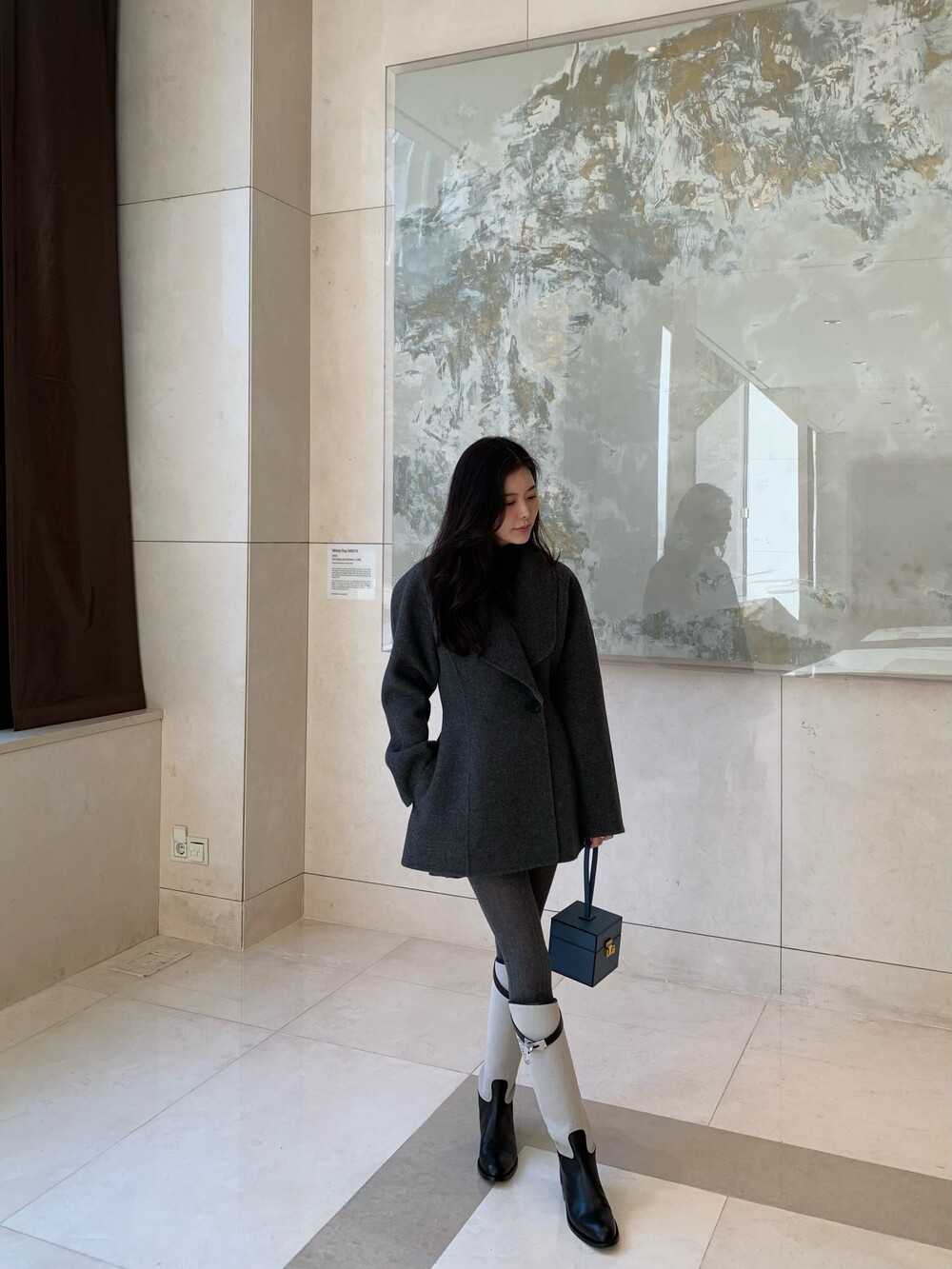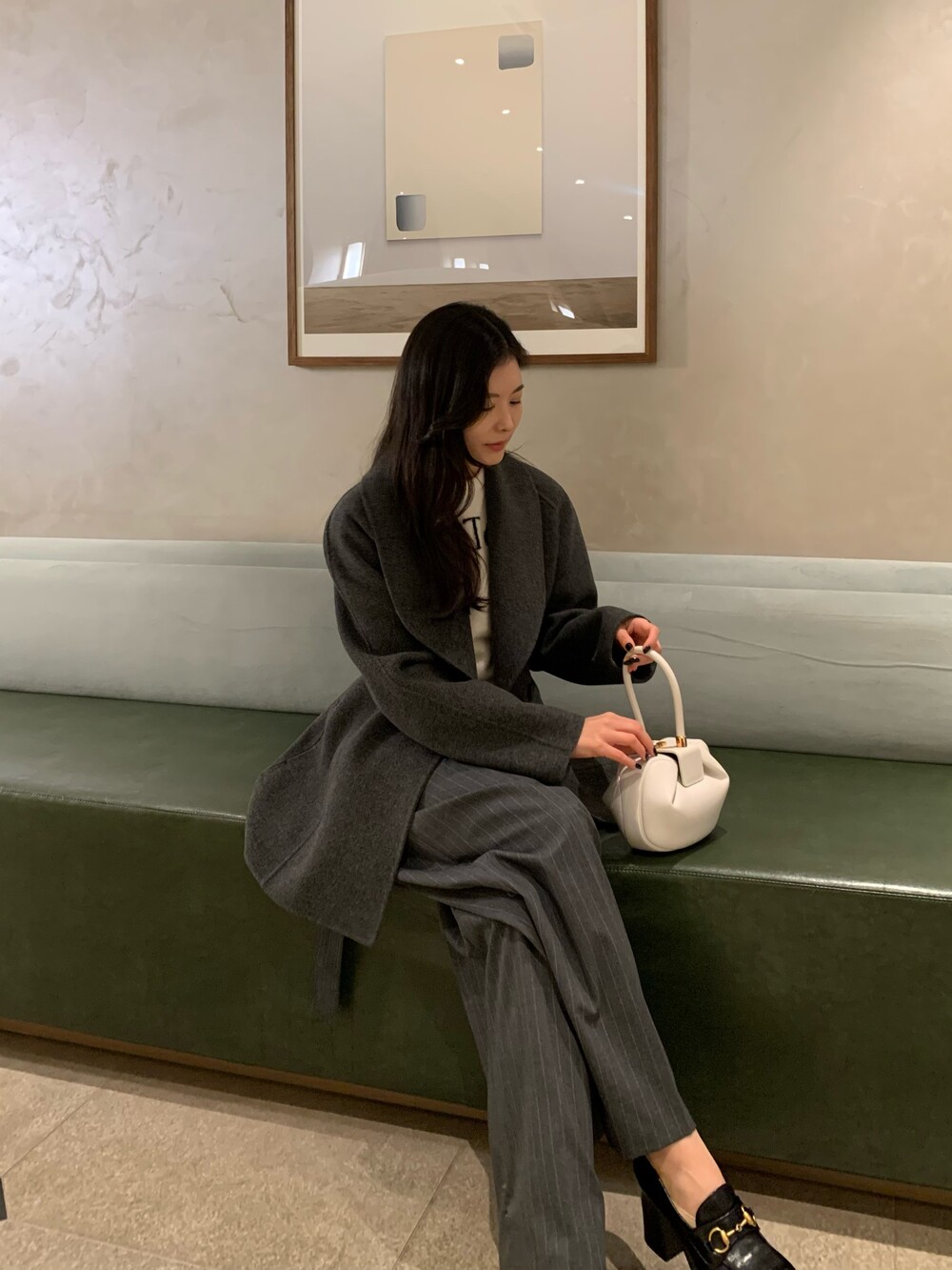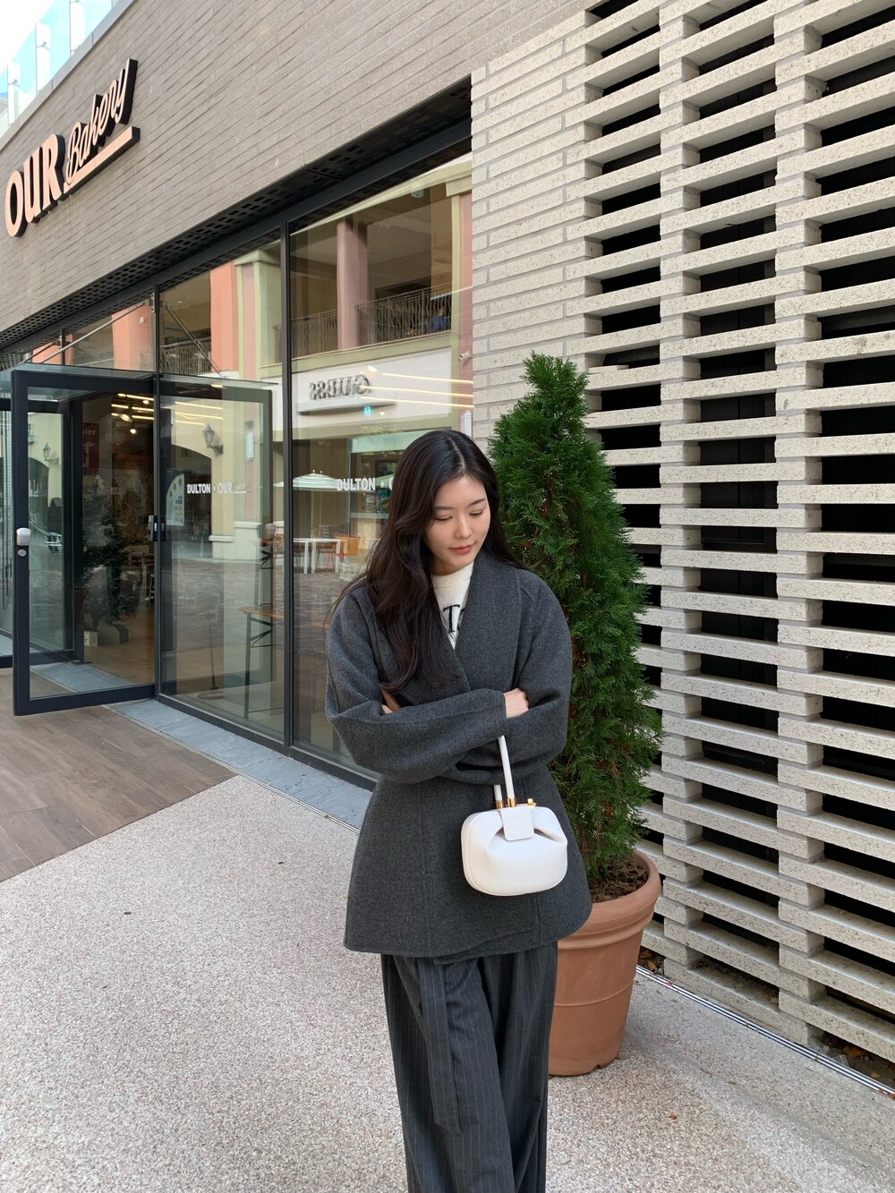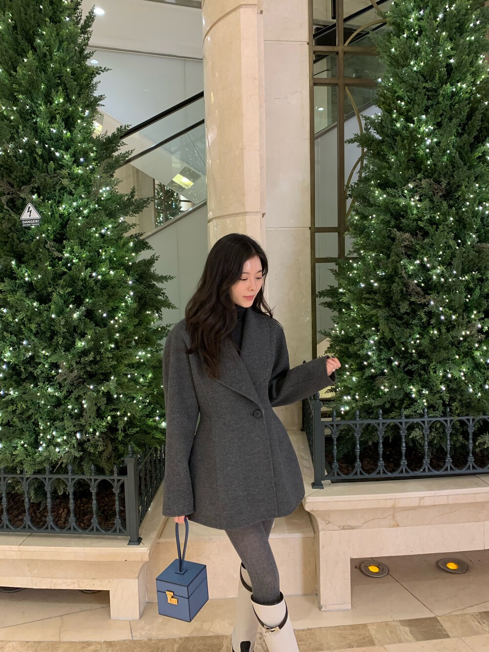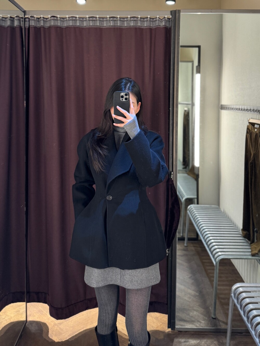 페뷸럼 실루엣의 울캐시미어 반코트입니다.