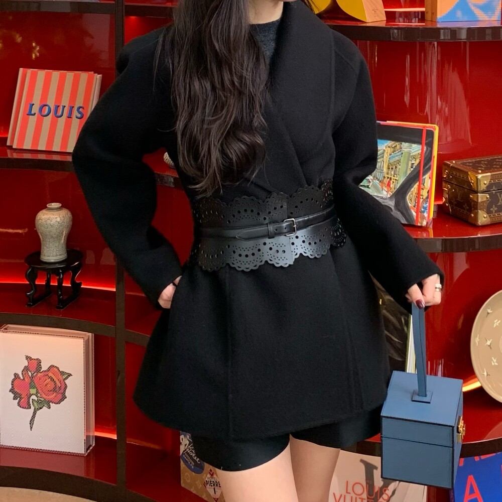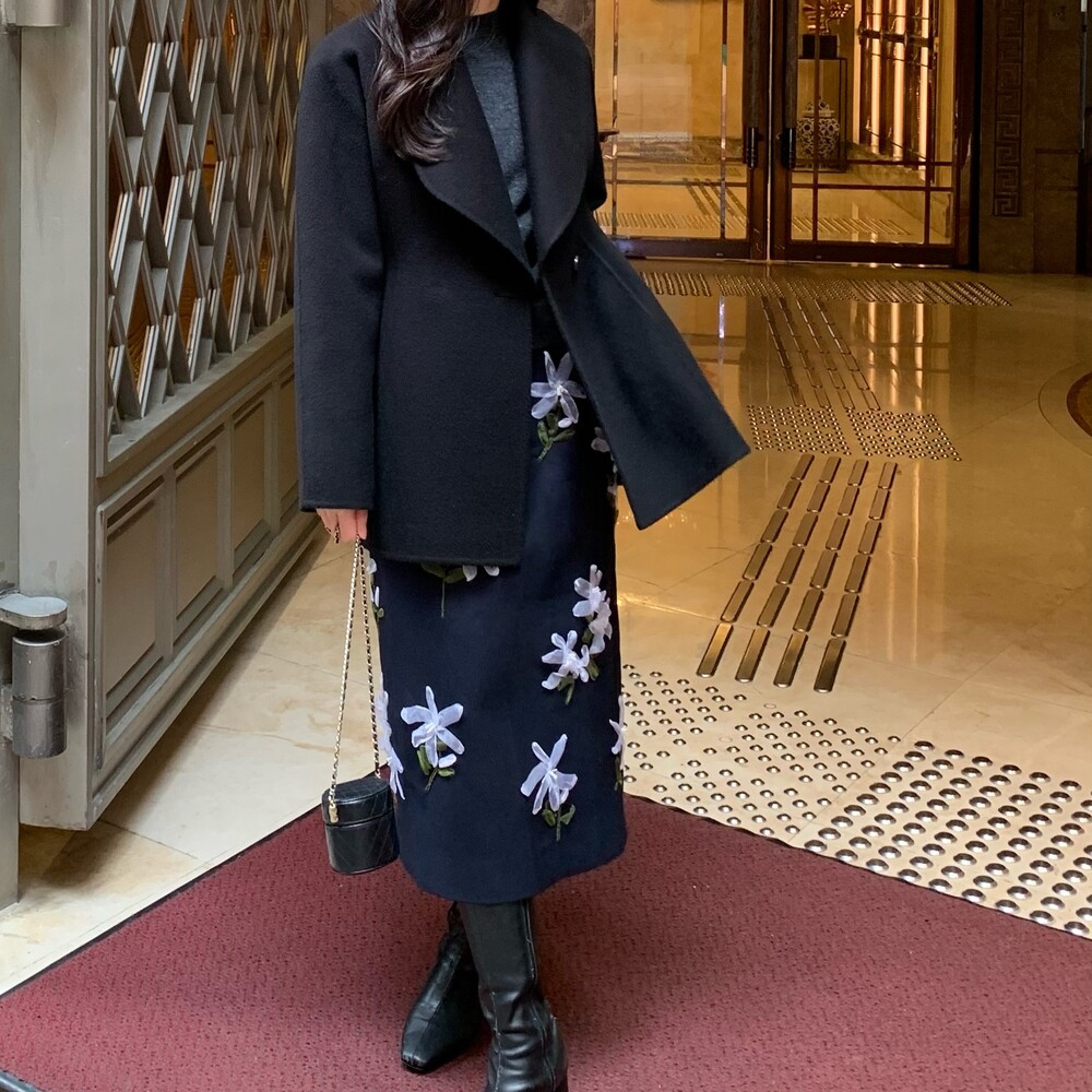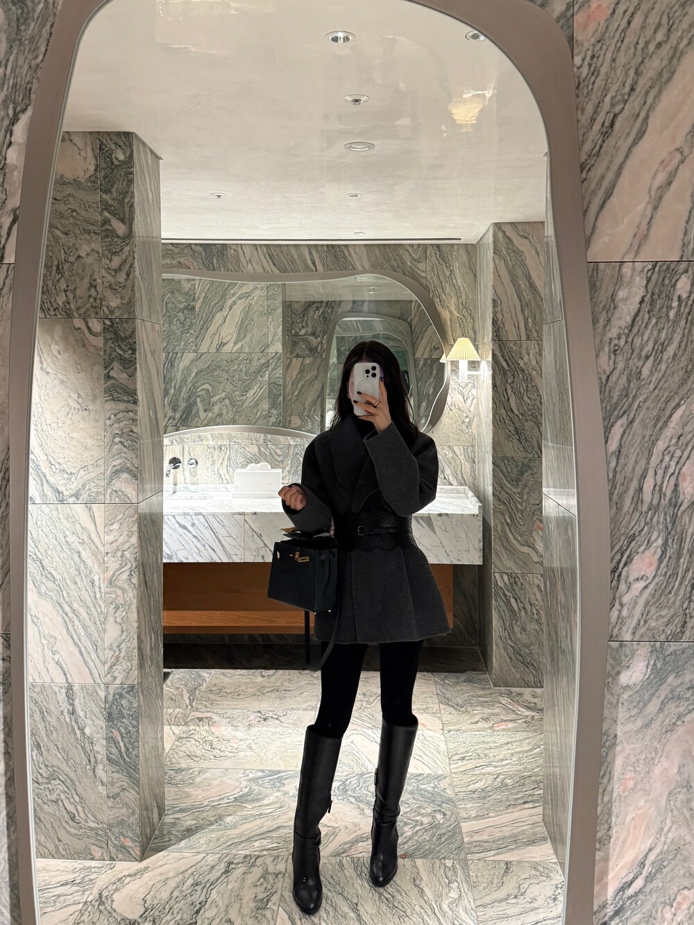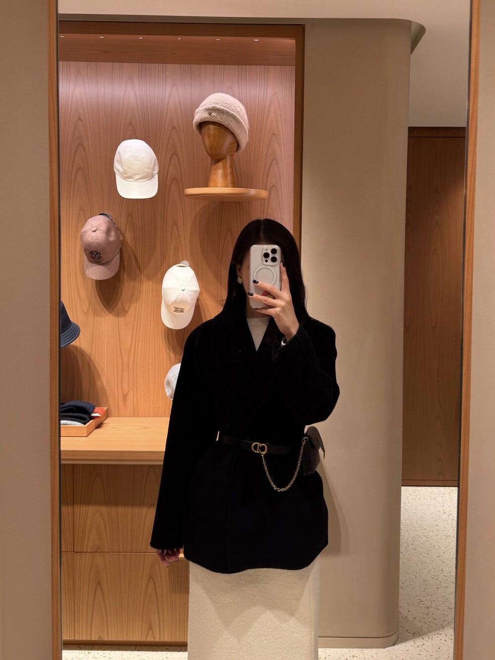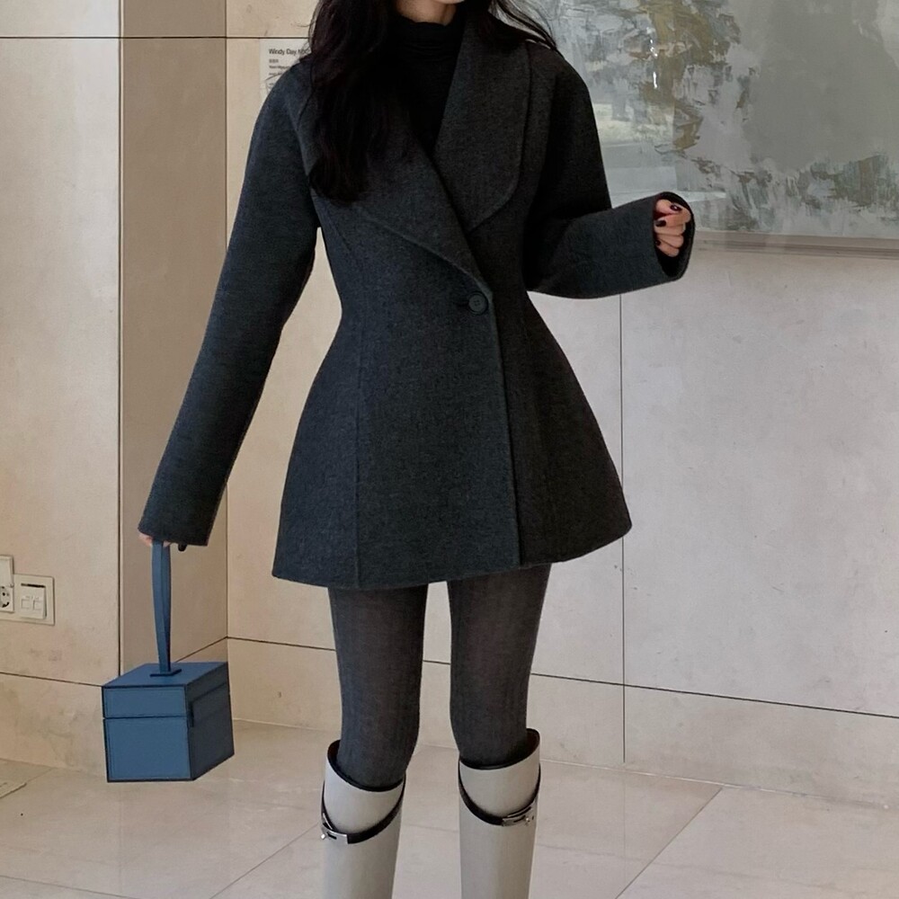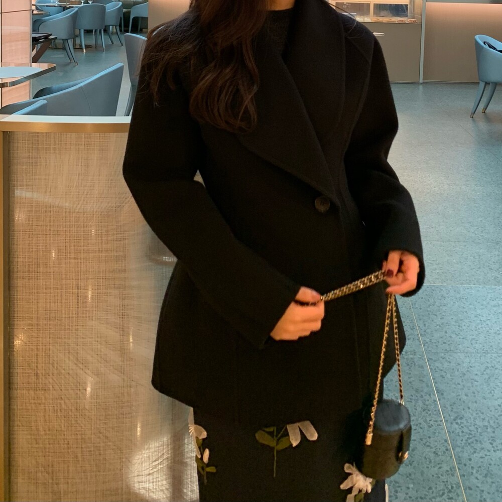 페뷸럼 실루엣의 울캐시미어 반코트입니다.