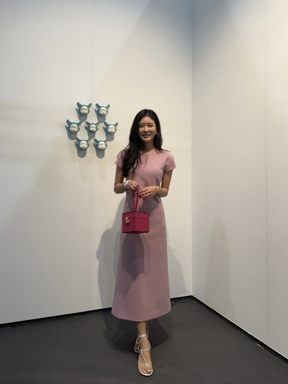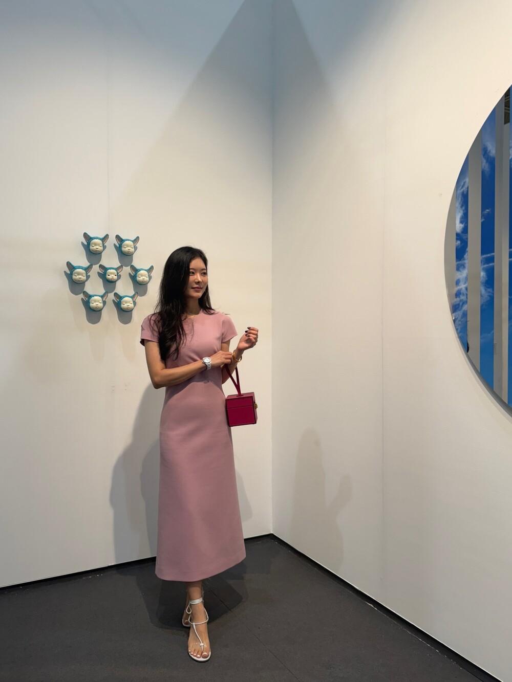 발목 위로 떨어지는 미디 롱 기장으로