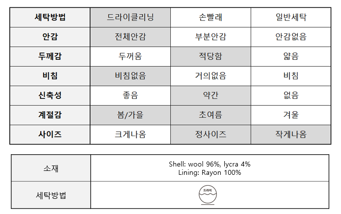 Wool 96%, Lycra 4% 혼용율의