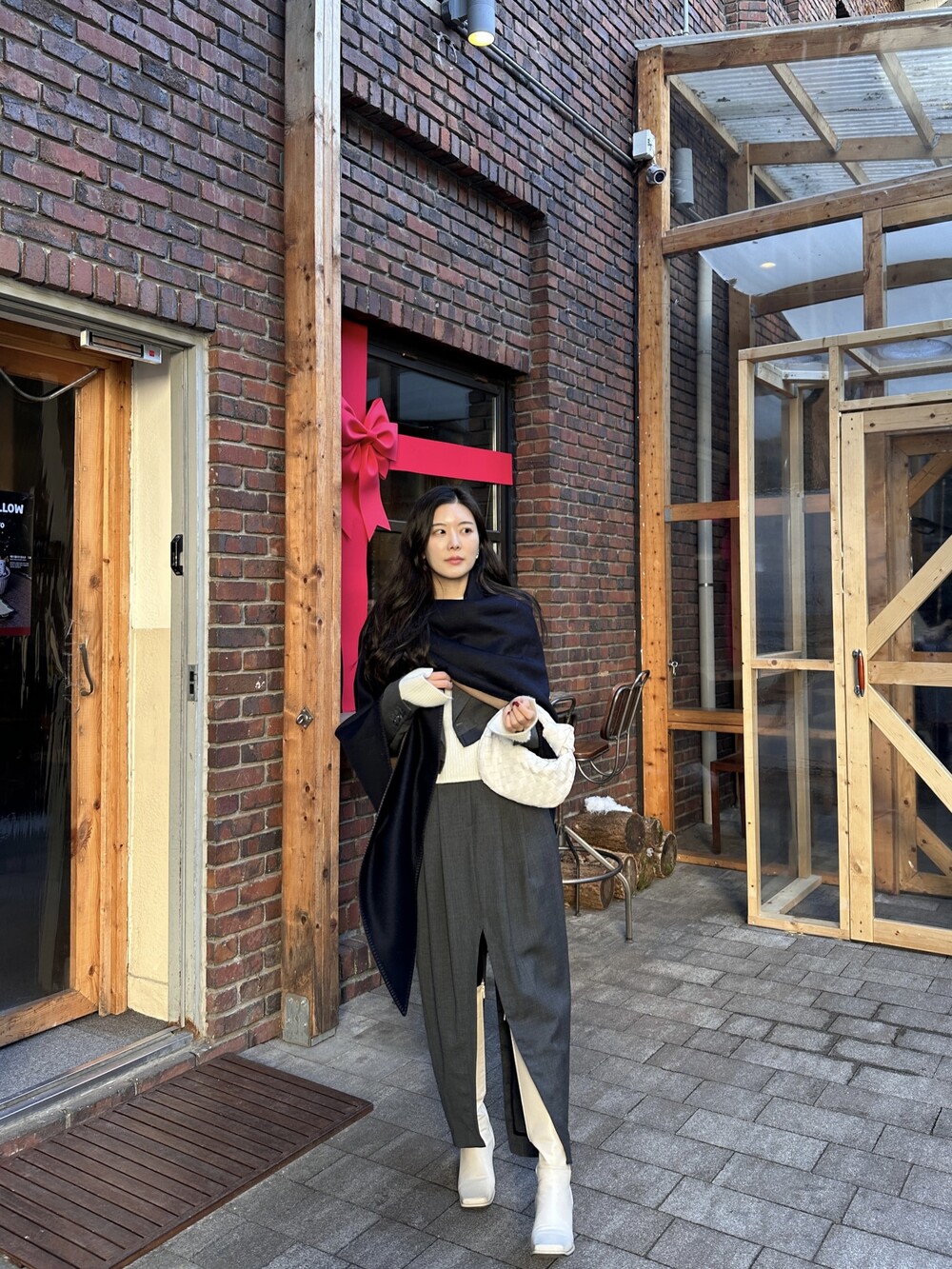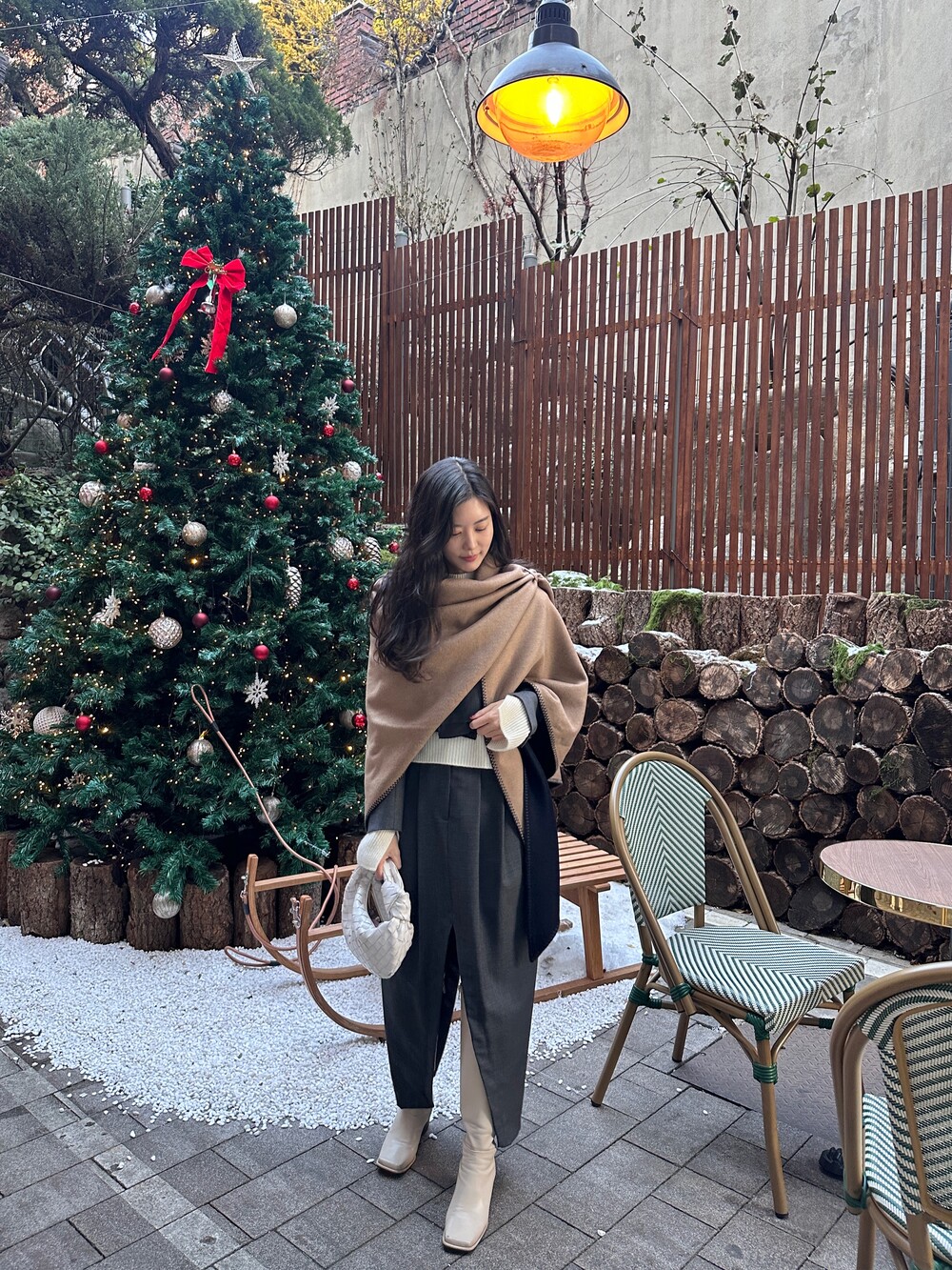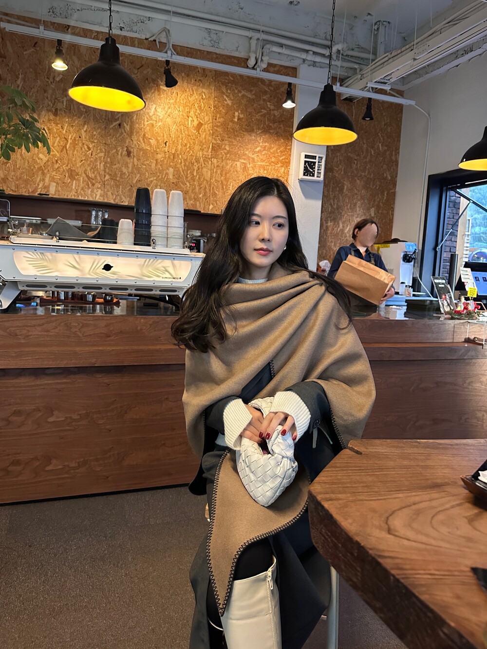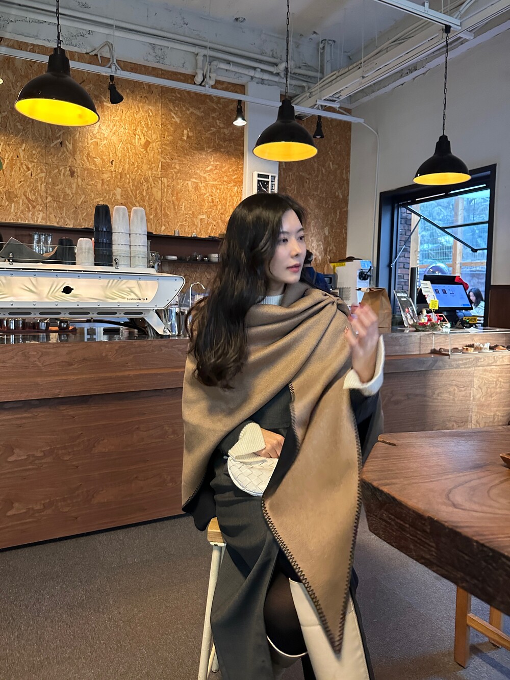 숄을 어깨 부분으로 넘겨 연출할 수 있도록
