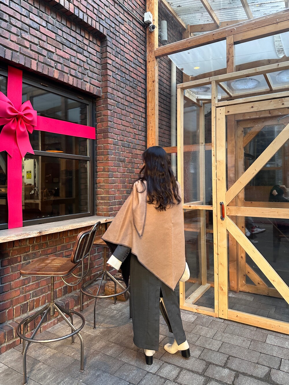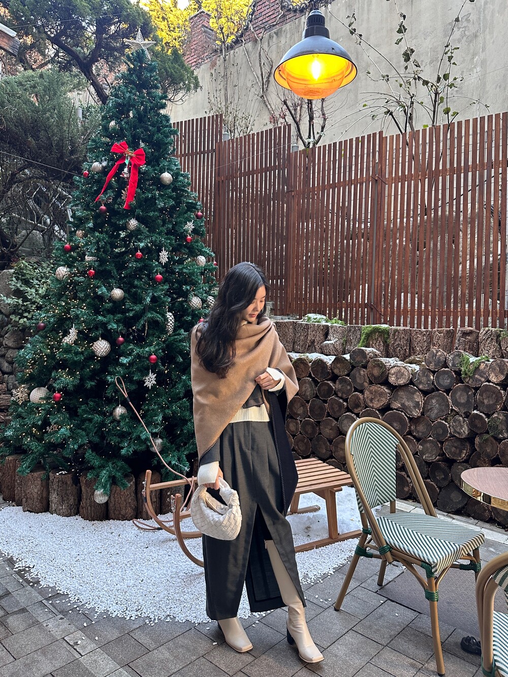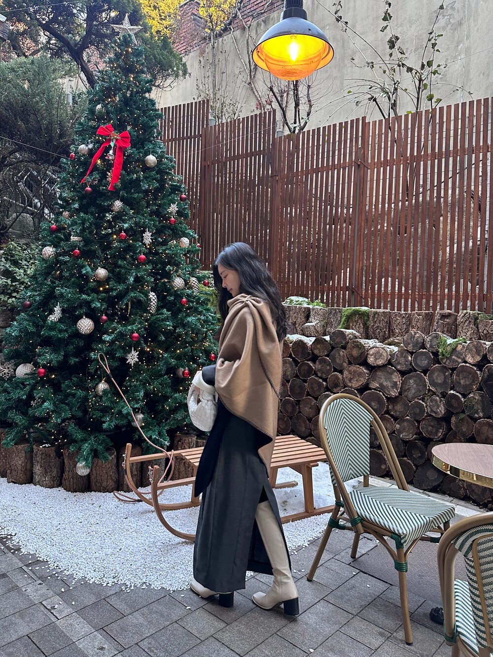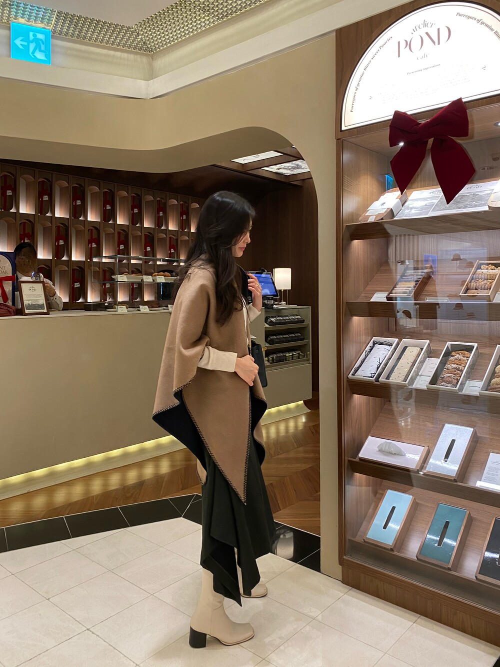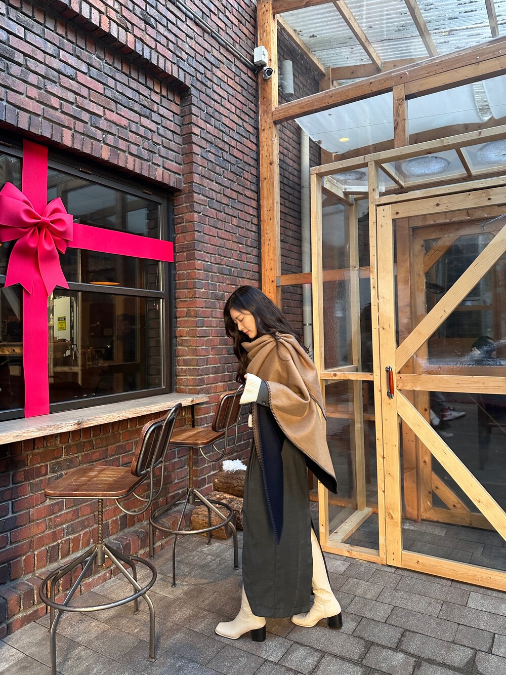 숄을 어깨 부분으로 넘겨 연출할 수 있도록