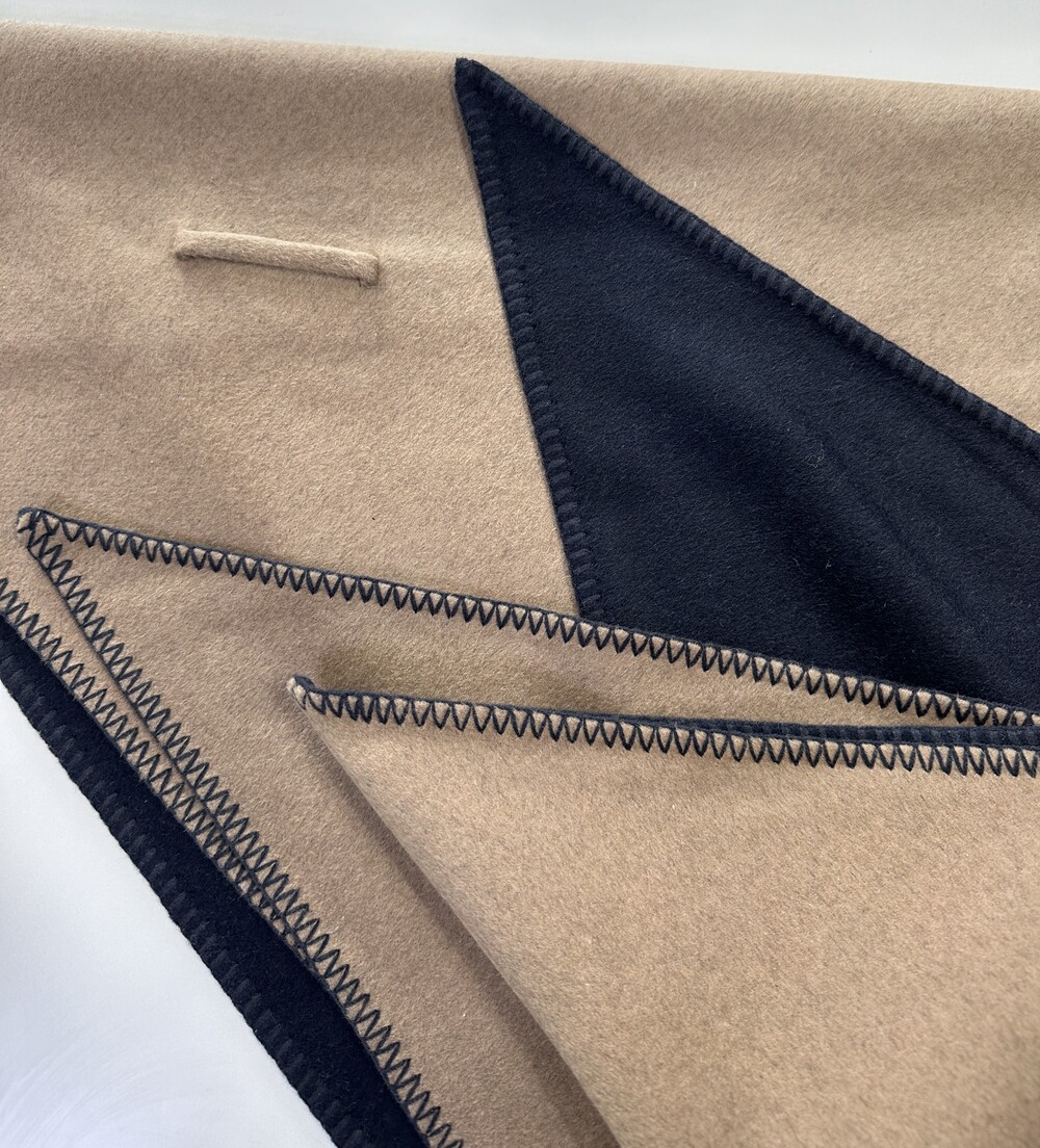 Woolcash Shawl (Navy/Camel reversible) Small Size