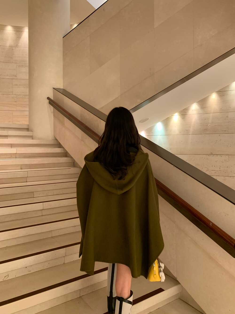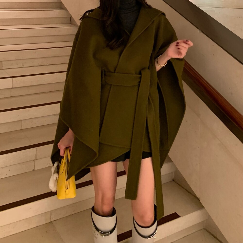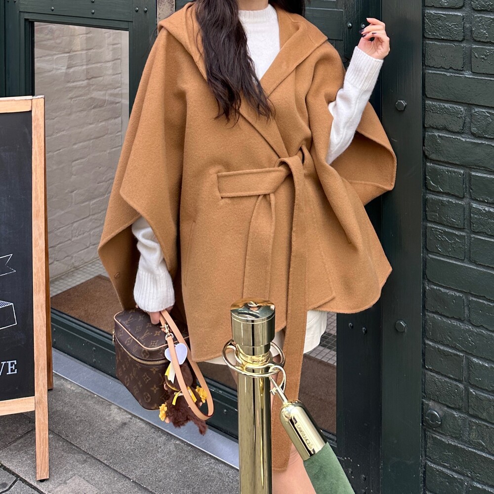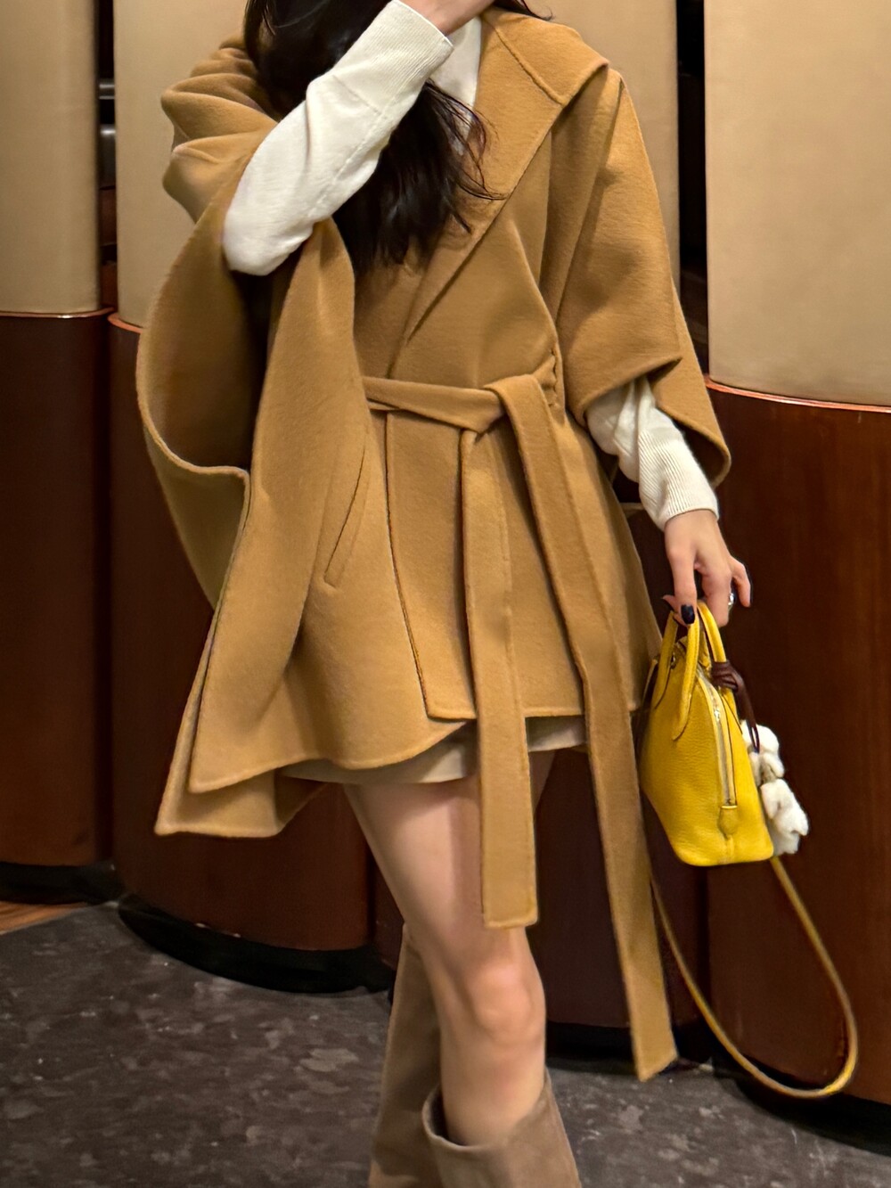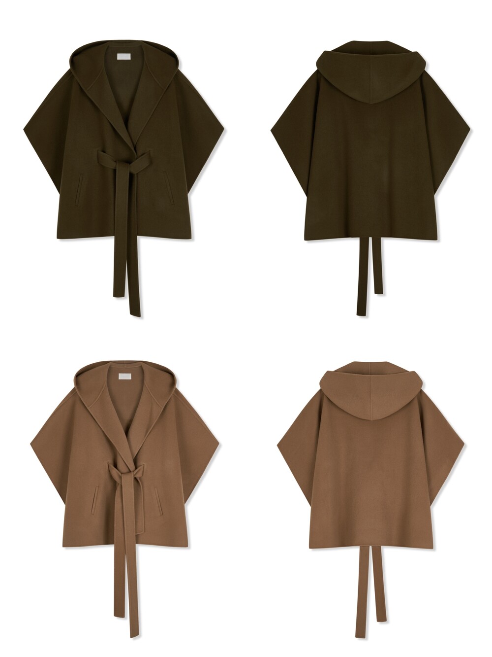* Handmade Wool Hood Cape (Camel / Khaki)
