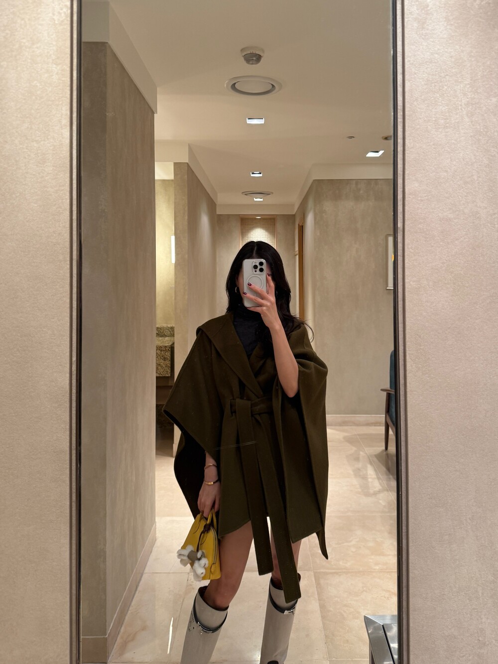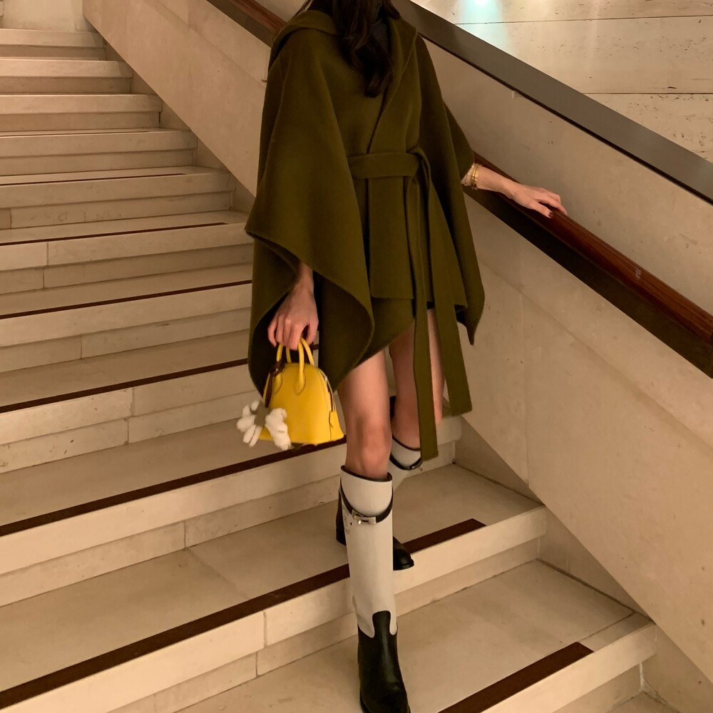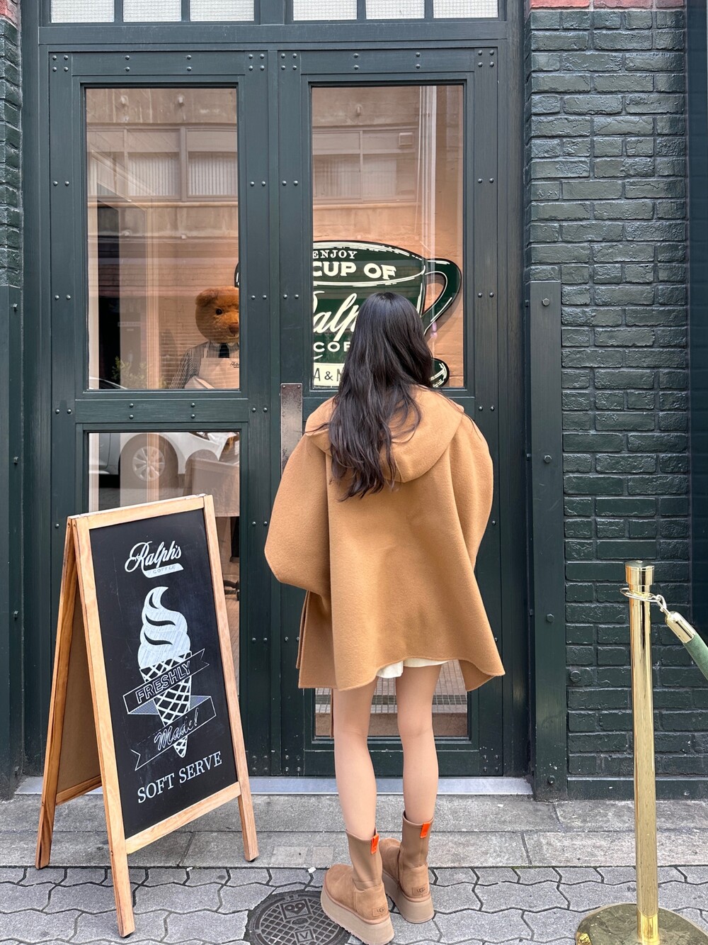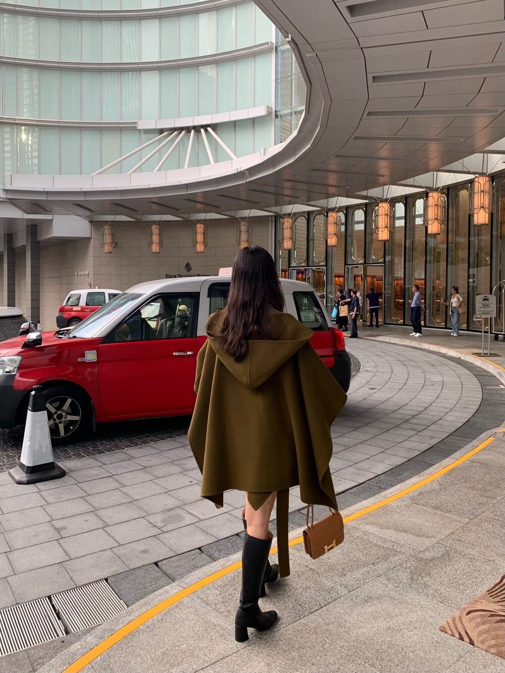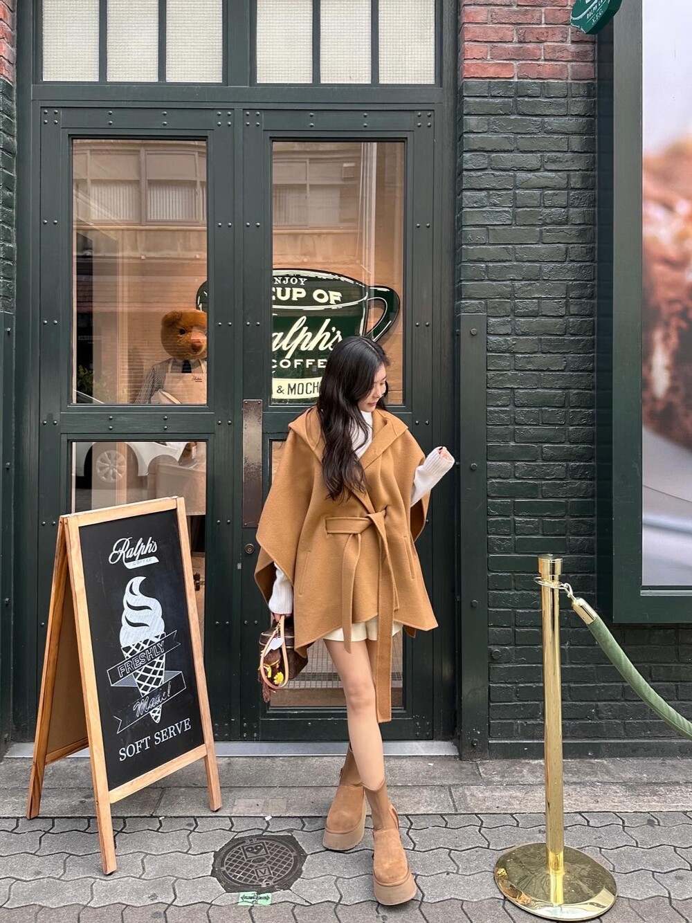 * Handmade Wool Hood Cape (Camel / Khaki)