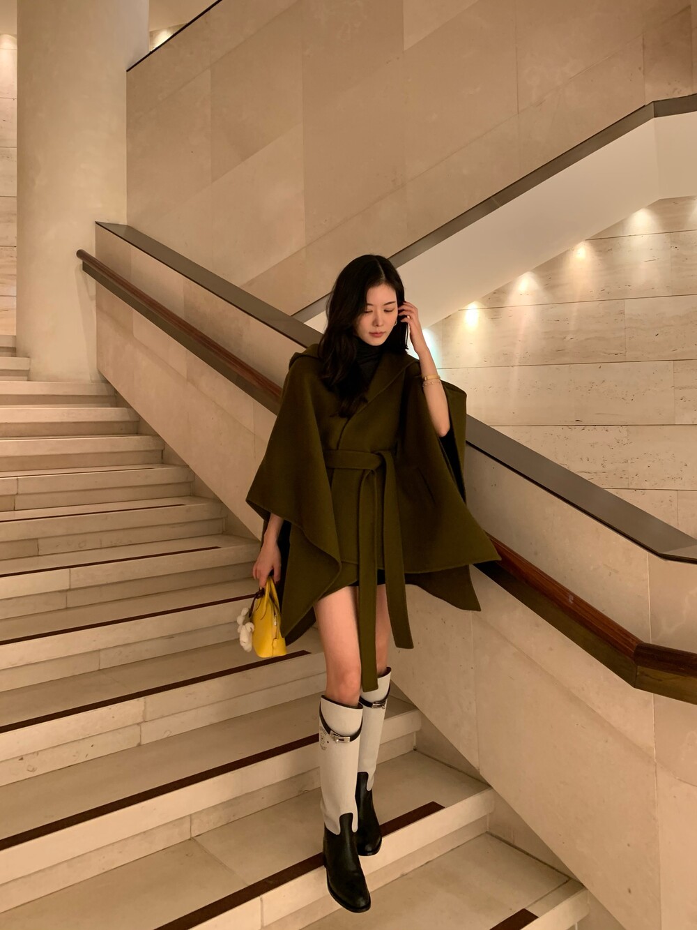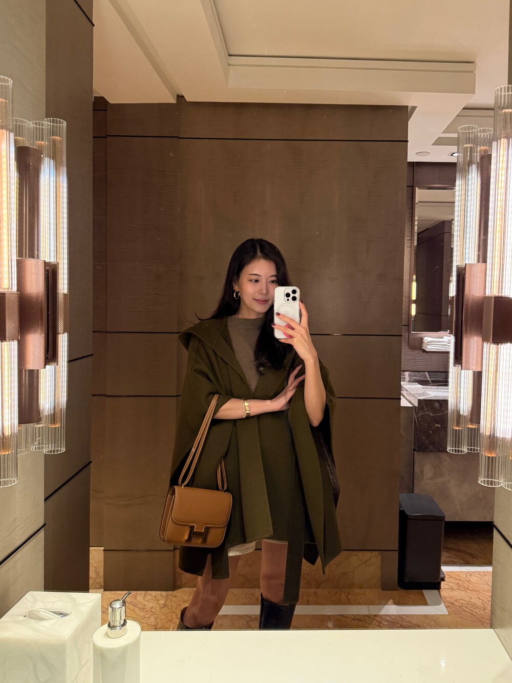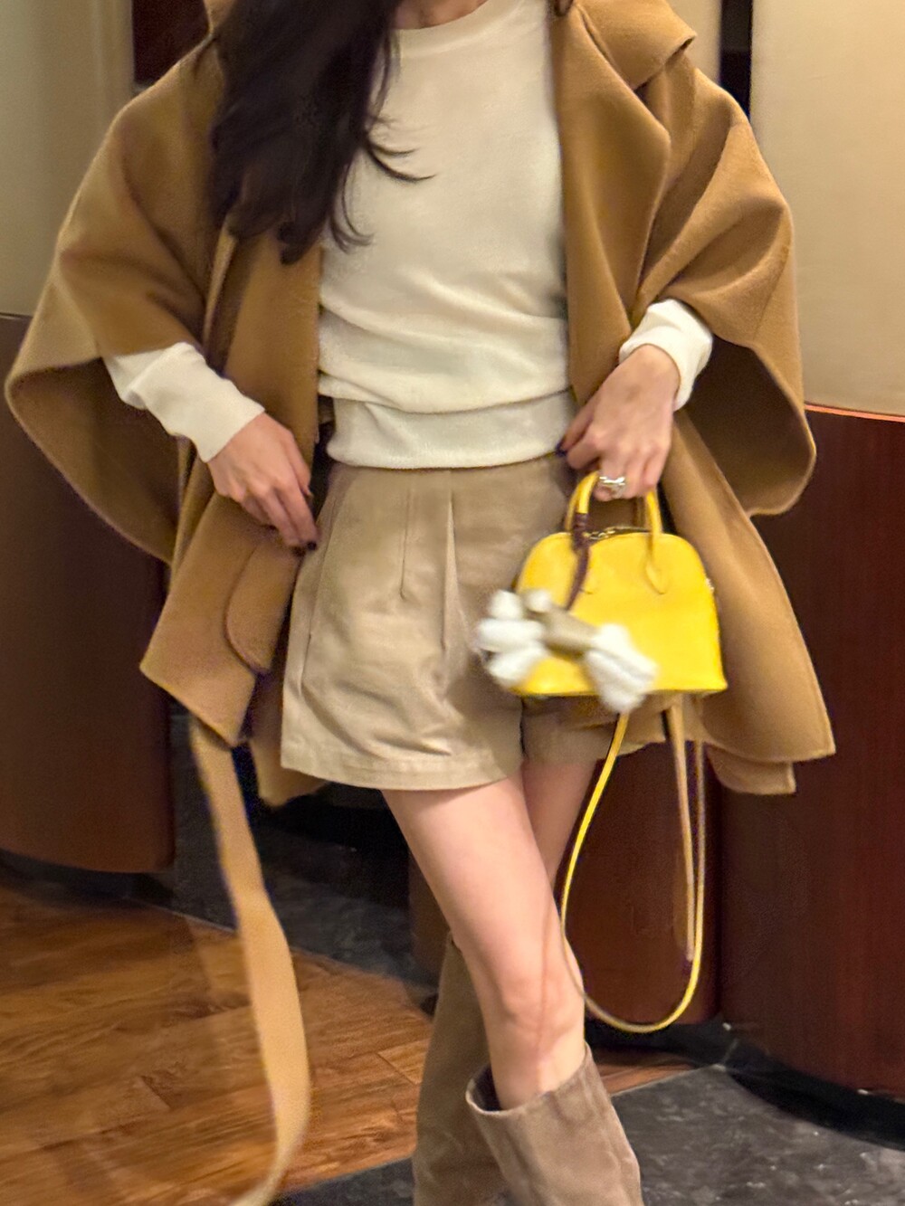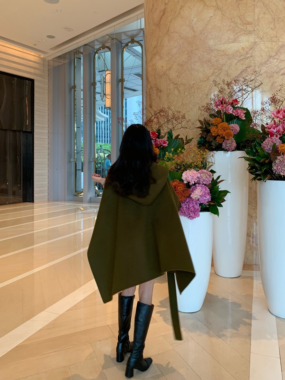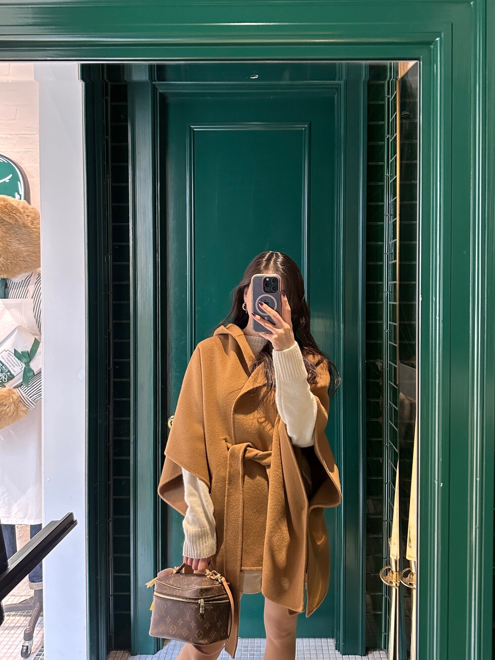* Handmade Wool Hood Cape (Camel / Khaki)