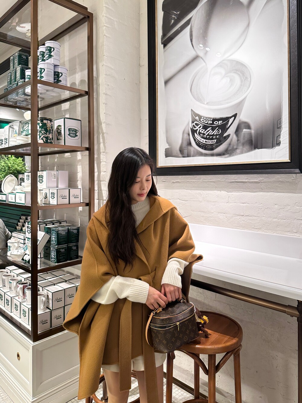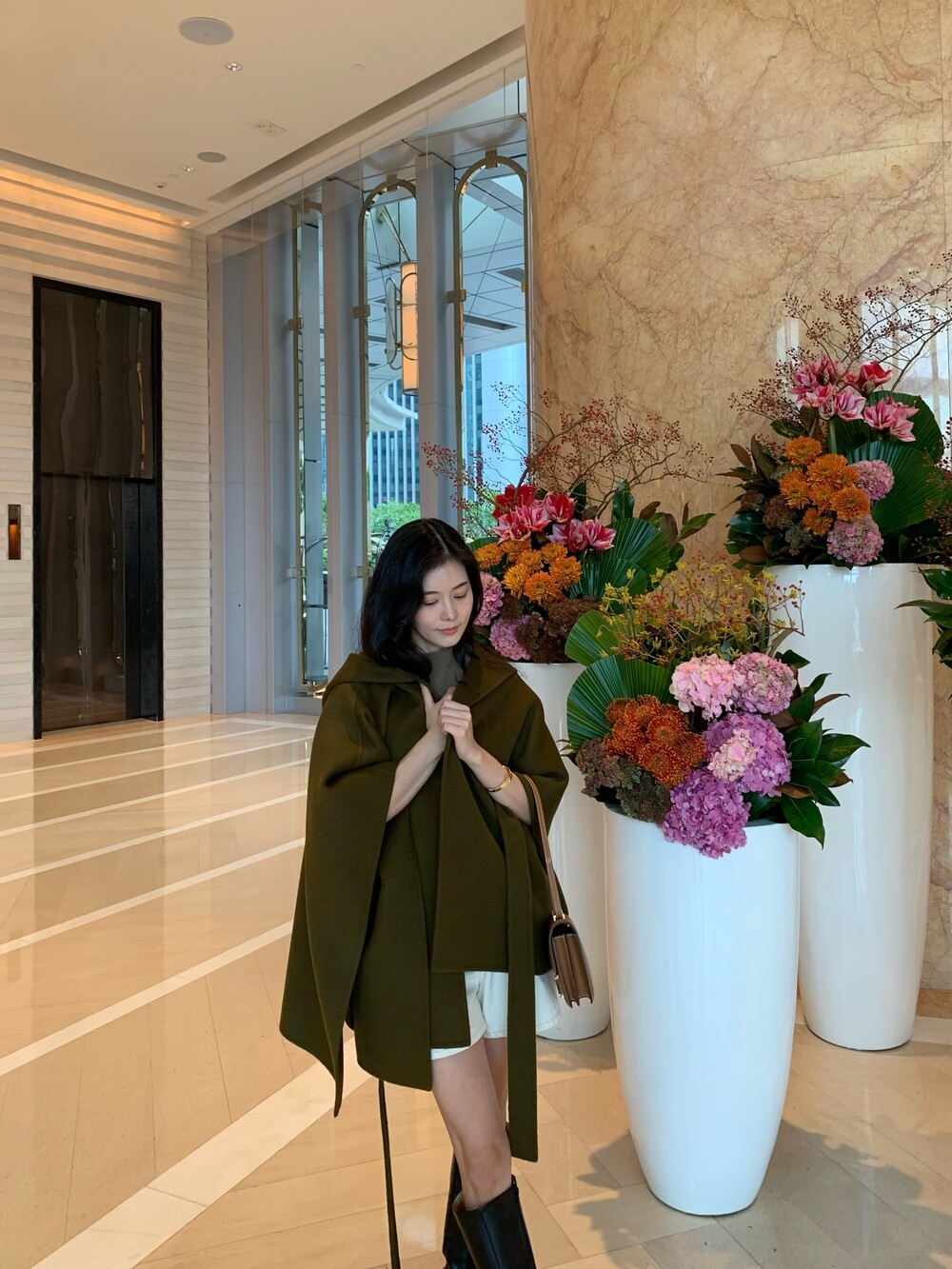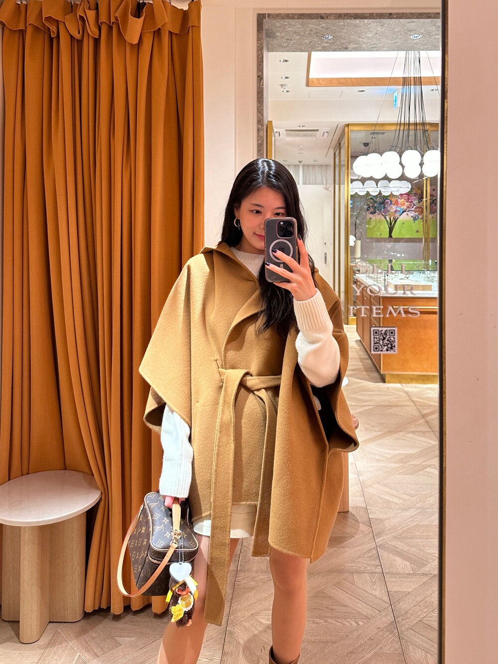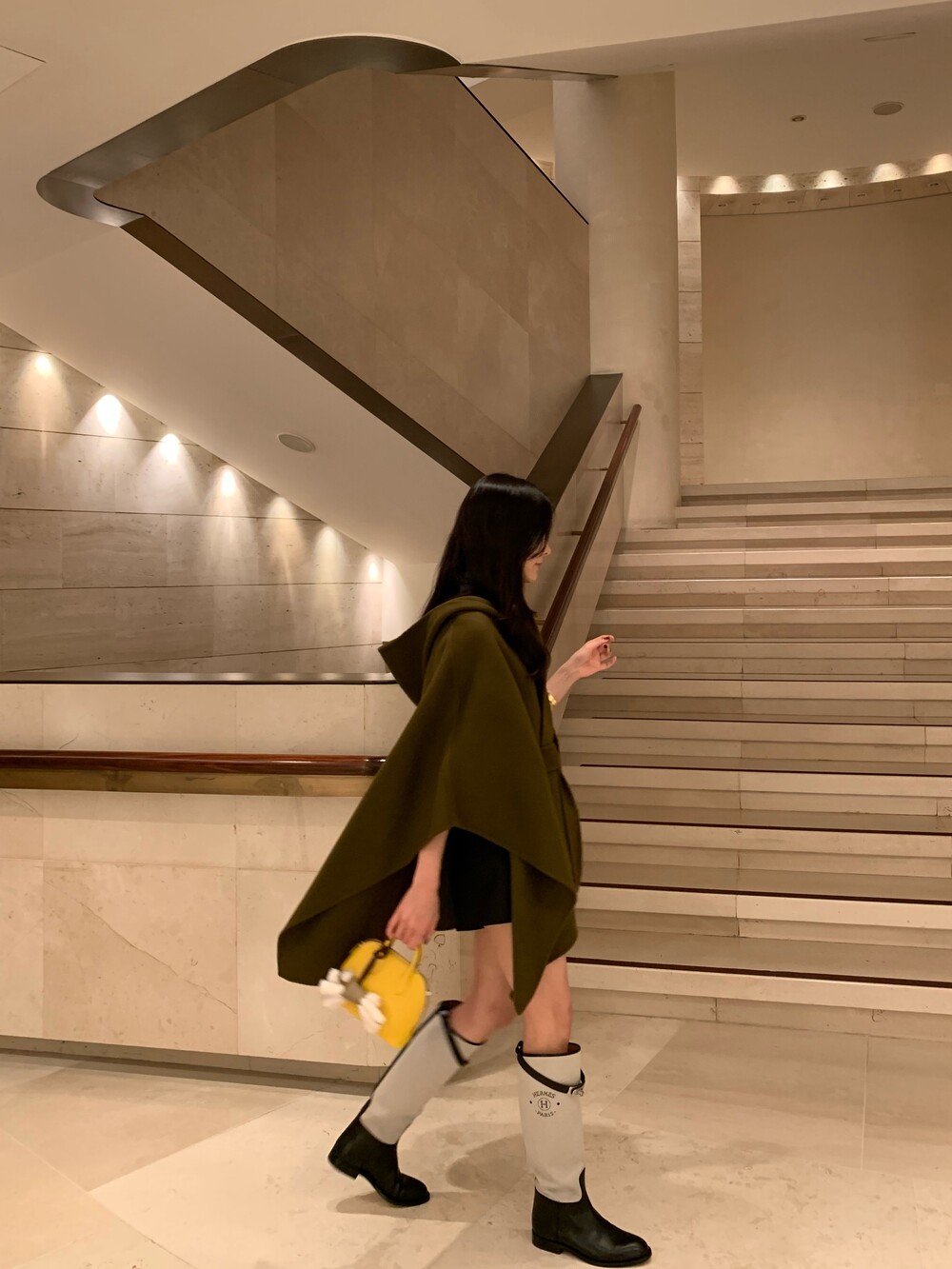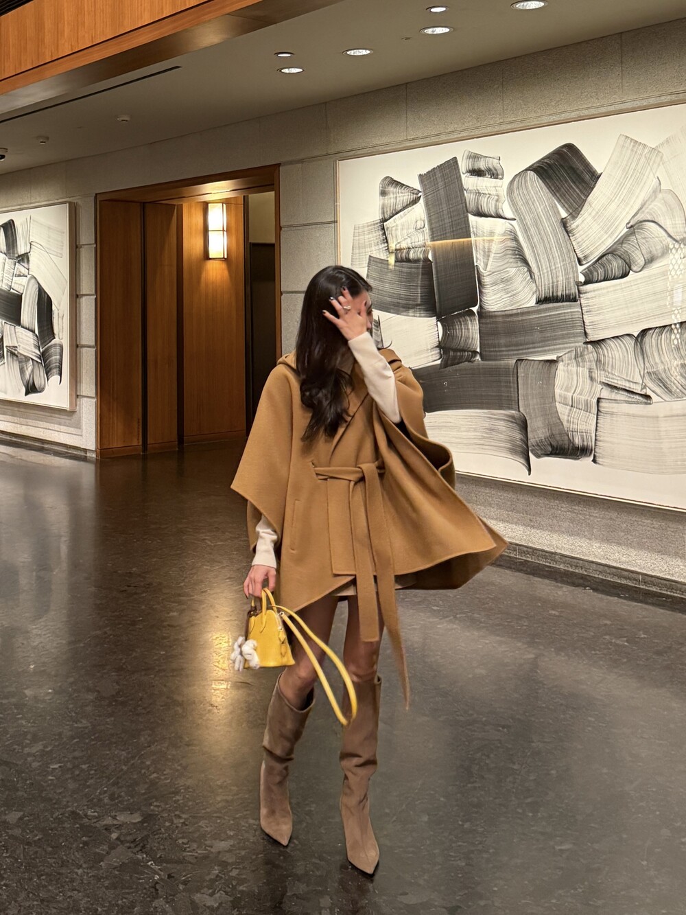 * Handmade Wool Hood Cape (Camel / Khaki)