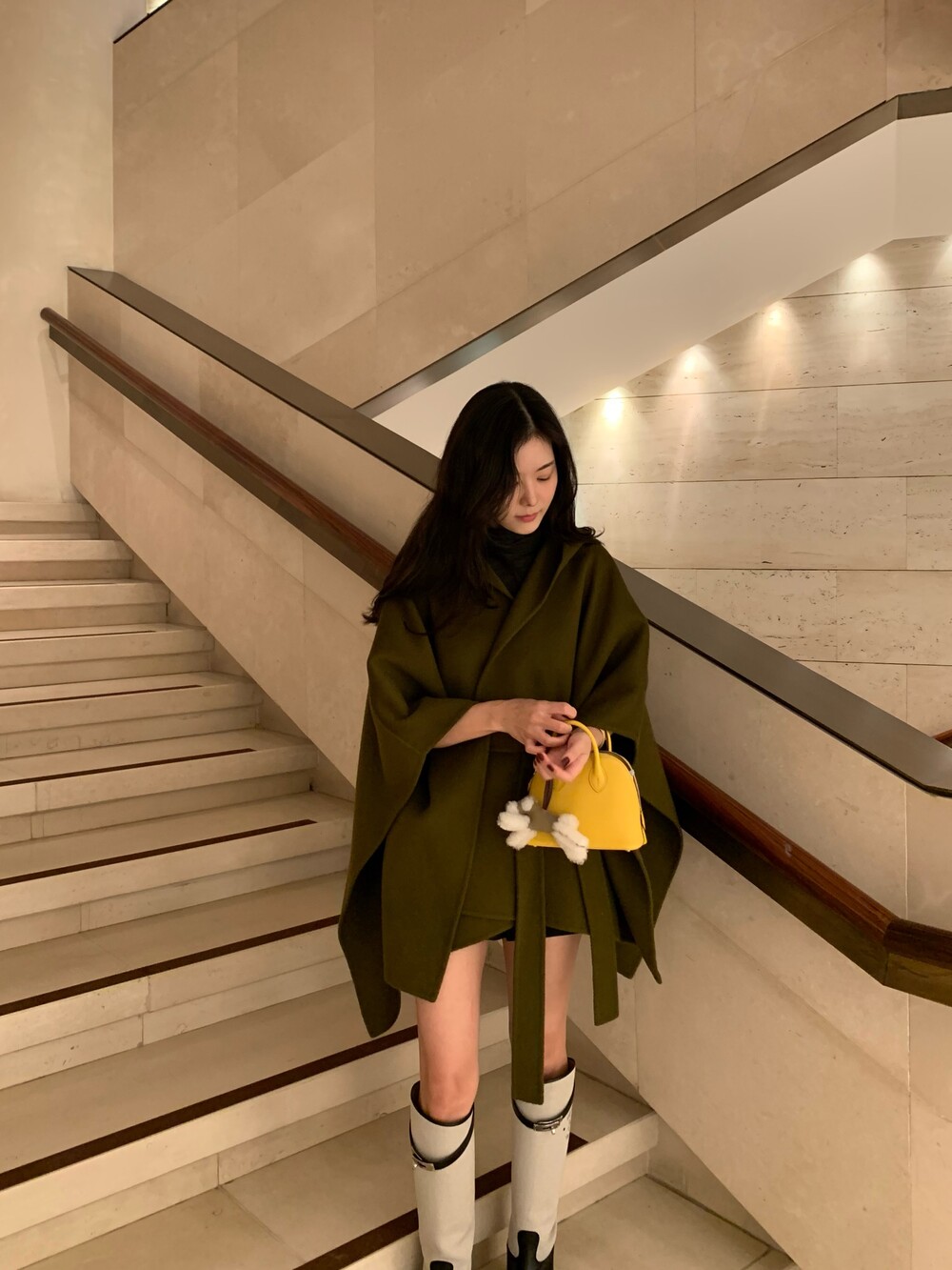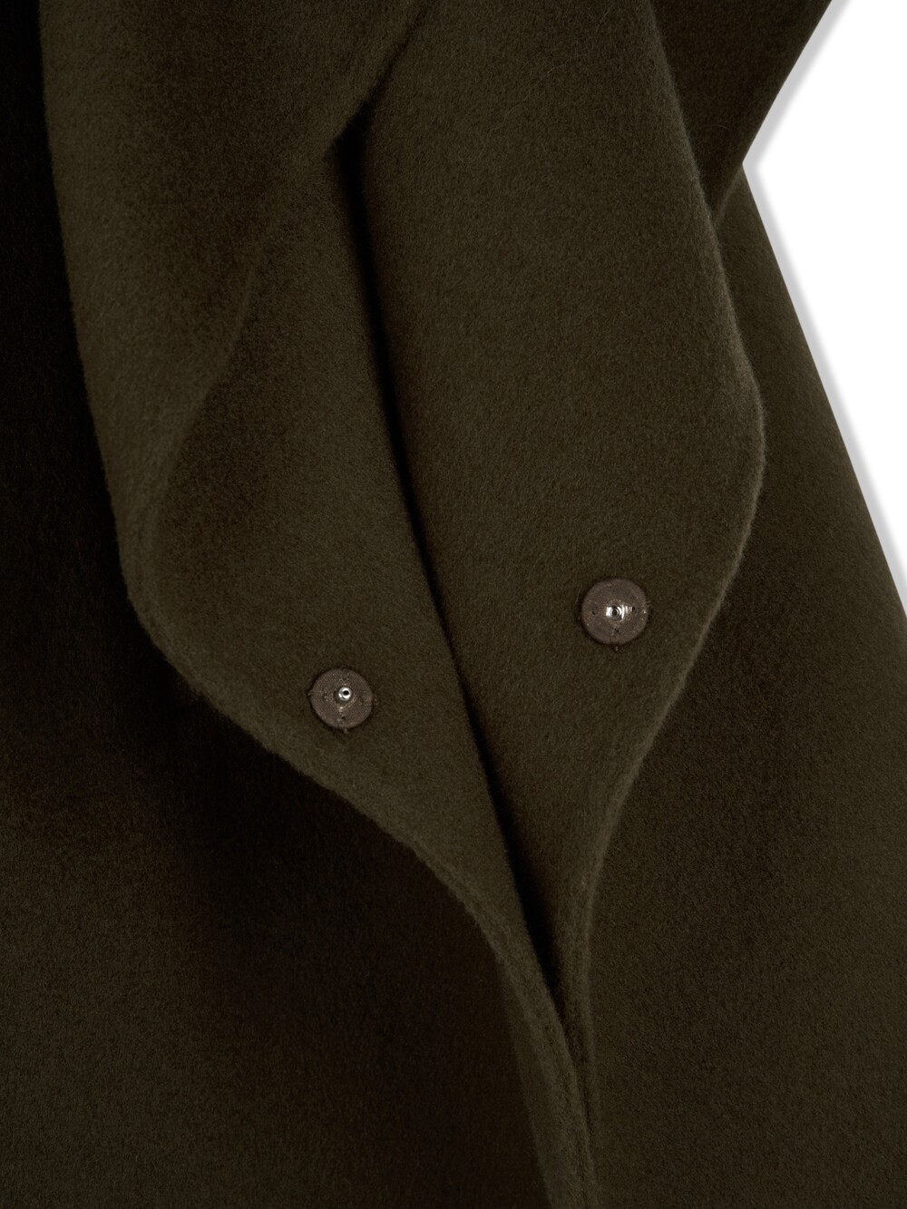 스냅을 열면 가볍게 흩날리는 숄 케이프 느낌으로 연출됩니다.
