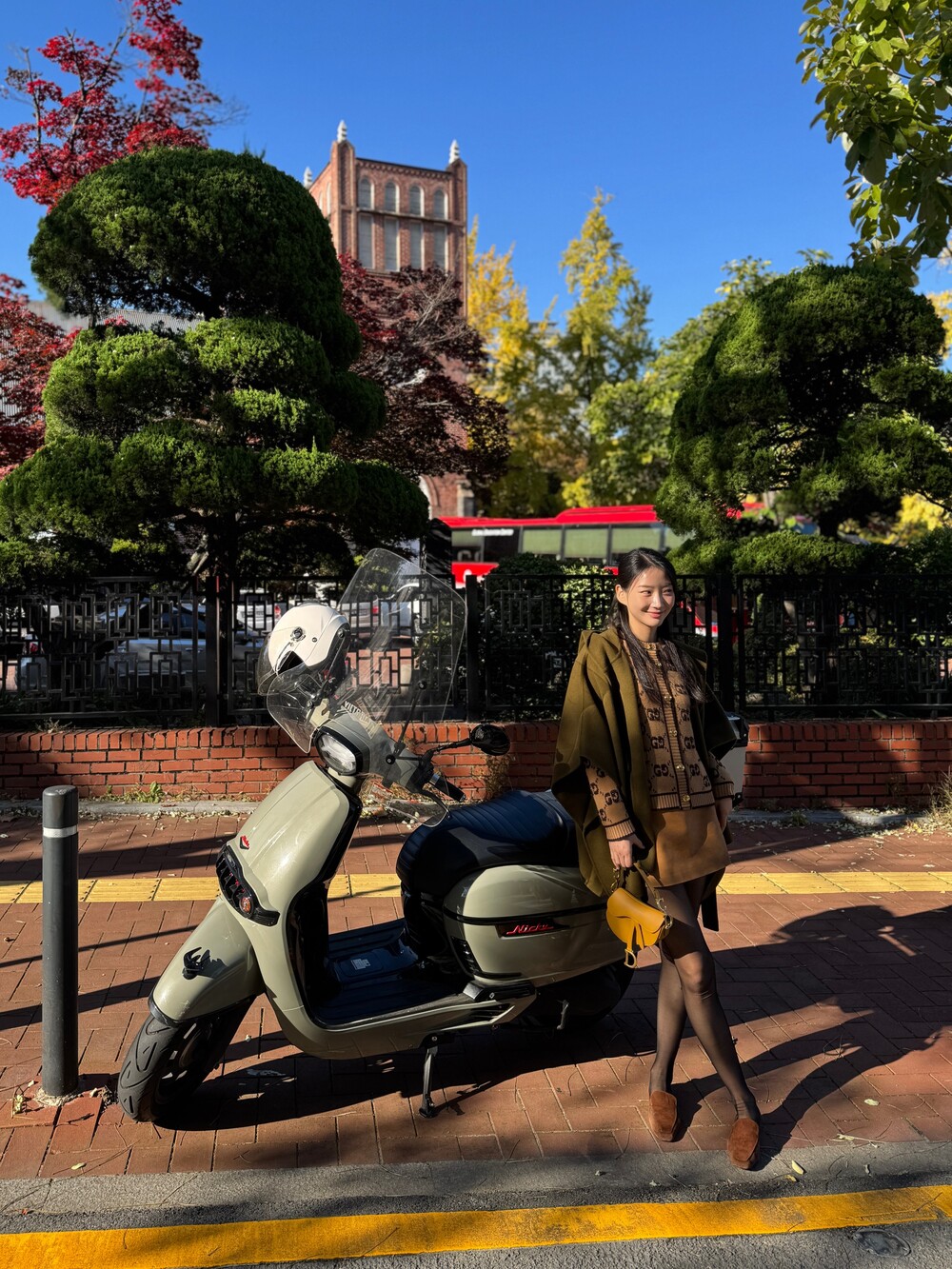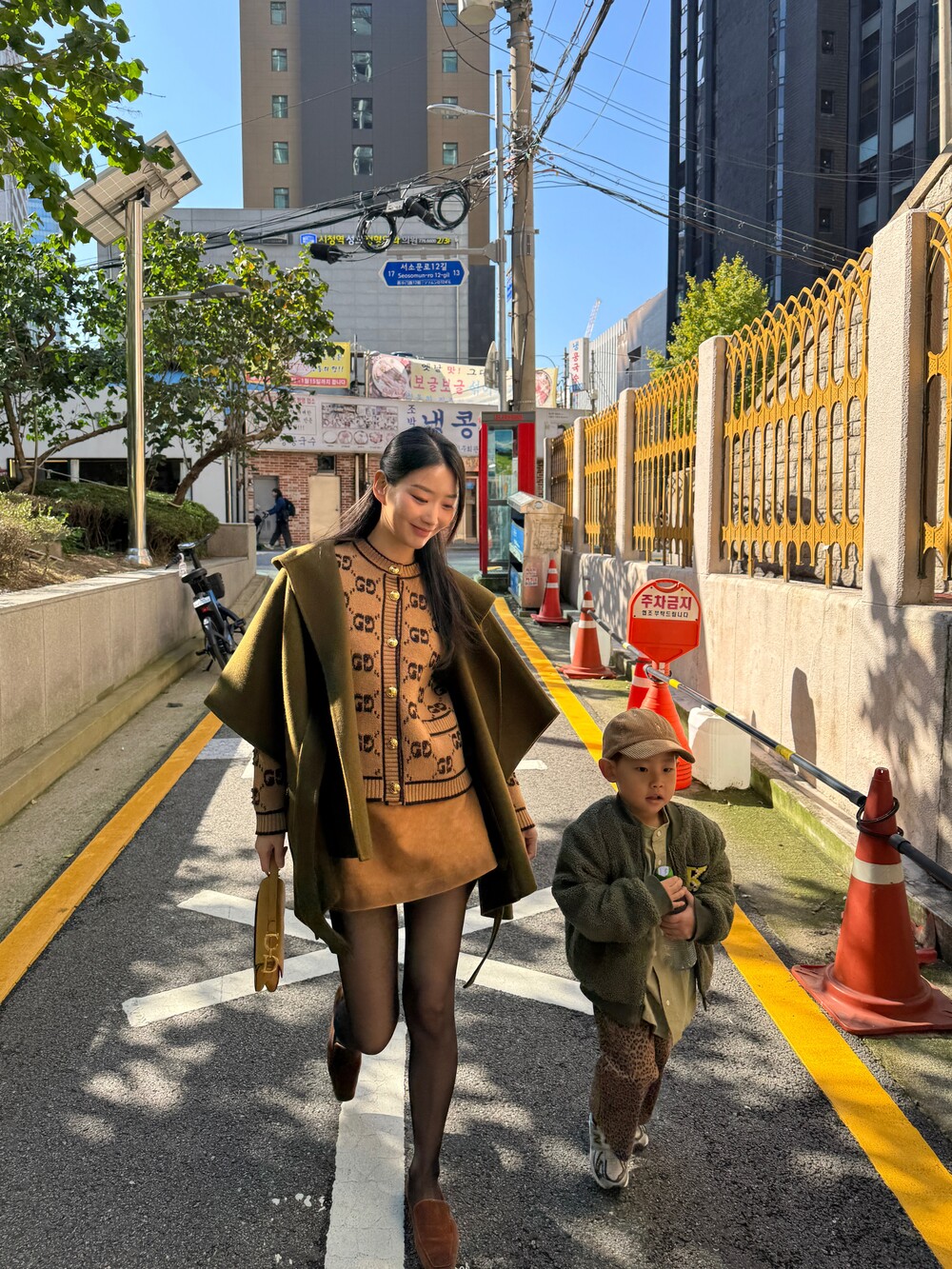 진한 카키와 진한 오랜지 빛 카멜 컬러는