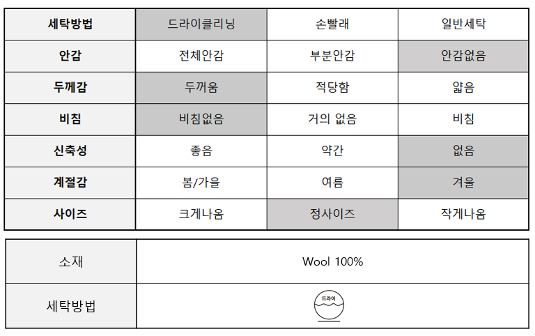 울 본연의 결이 살아 있어 세련된 존재감을 유지합니다.